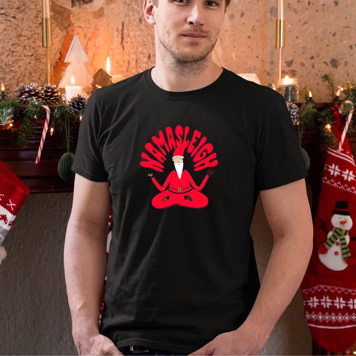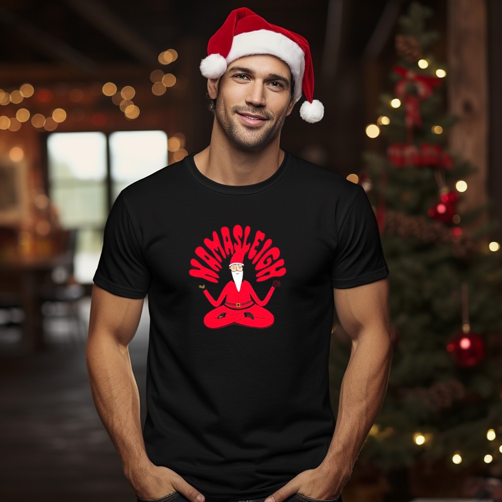 Embrace the holiday spirit with our Namasleigh Santa Claus Yoga Christmas T-Shirt! Perfect for yoga enthusiasts and festive souls alike, this shirt combines a playful nod to Santa’s sleigh with a touch of zen. Ideal for casual gatherings, themed events, or simply spreading cheer during the festive season, this fan-made design, printed in the USA, is a unique addition to your holiday wardrobe.