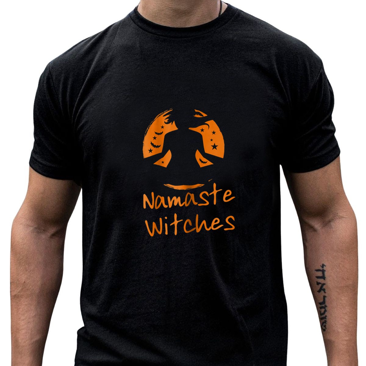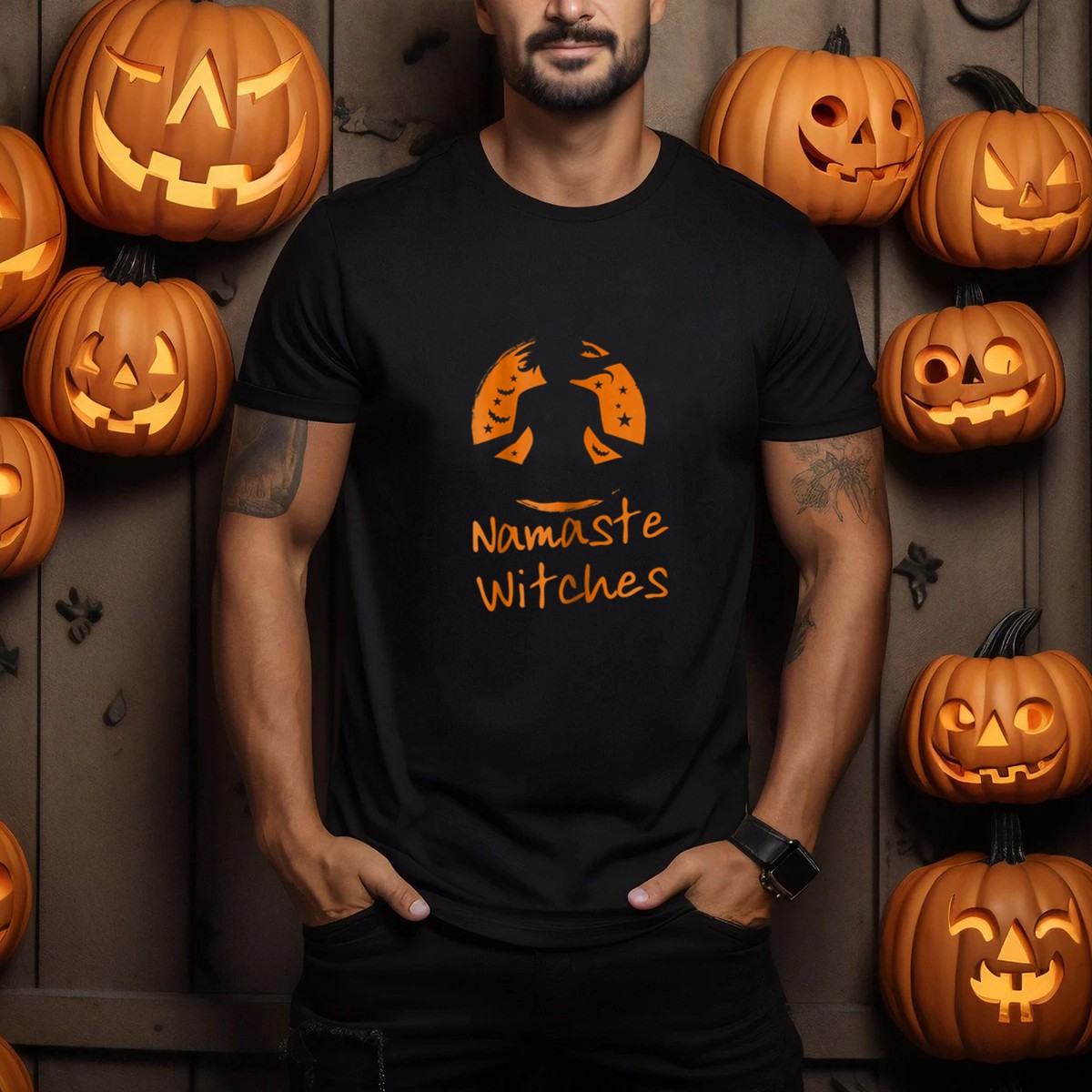 Embrace your inner witch this Halloween with our “Namaste Witches” graphic T-shirt, perfect for yoga enthusiasts and Halloween lovers alike! This fan-made design features a striking silhouette of a witch in a classic yoga pose, complete with a whimsical witch hat and playful bats, making it an ideal choice for casual wear, themed events, or even daily adventures. Printed in the USA, this shirt combines comfort and style, allowing you to express your unique personality while enjoying the soft, breathable feel of 100% cotton.