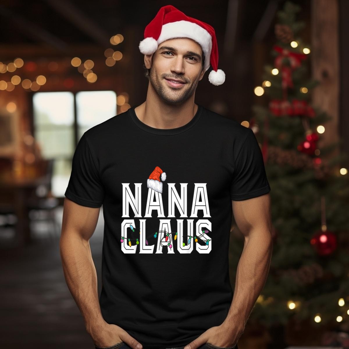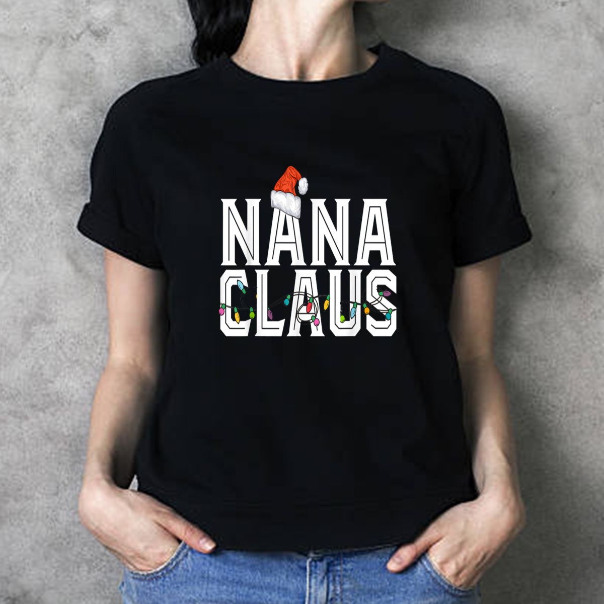 Celebrate the holiday season in style with our Nana Claus Santa Hat Christmas Lights T-Shirt! Perfect for grandmothers who love to spread Christmas cheer, this festive tee is ideal for casual gatherings, themed events, or simply enjoying the holiday spirit at home. The unique fan-made design, proudly printed in the USA, showcases a playful and heartwarming tribute to all the amazing Nanas out there, making it a delightful addition to your holiday wardrobe.
