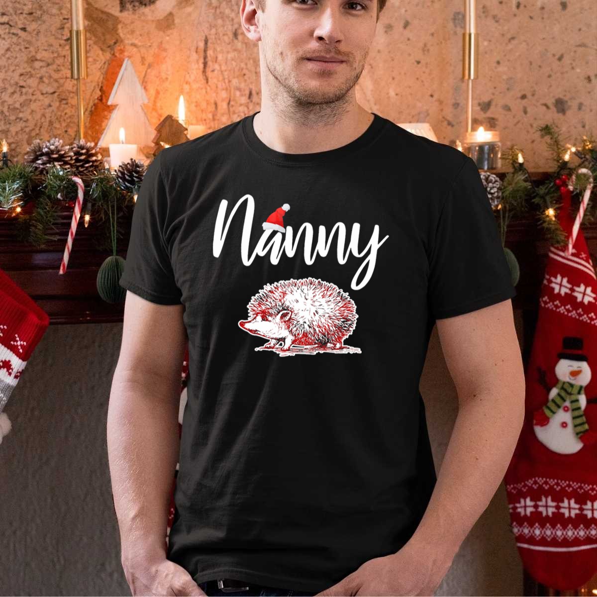 Nanny Hedgehog With Santa Hat Christmas T Shirt