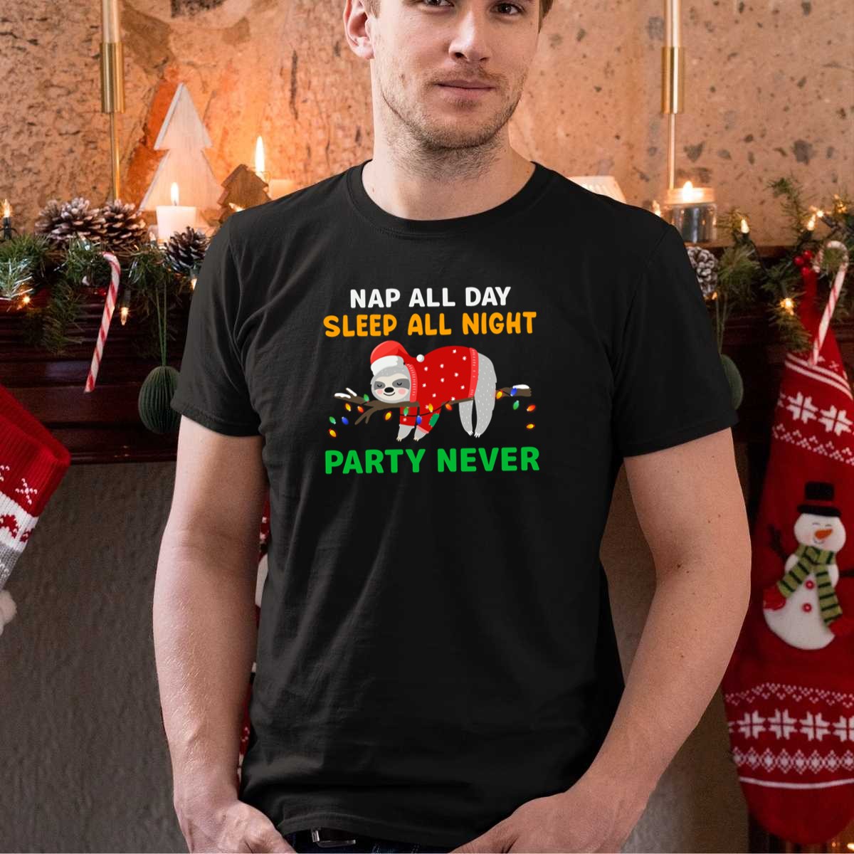 Be the first to review “Nap All Day Sleep All Night Party Never Christmas Sloth Holiday Lights T-Shirt”