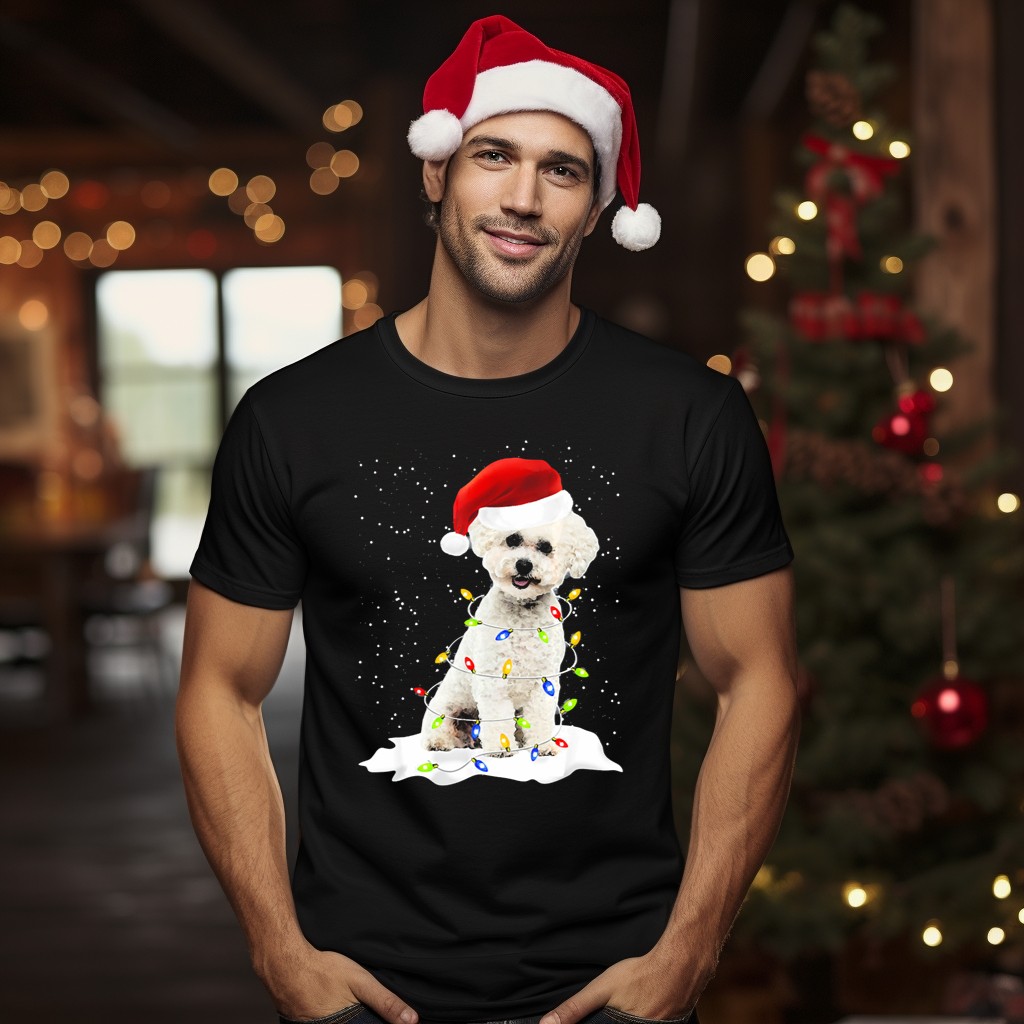 Celebrate the festive season with our Naughty Bichon Frise Christmas Fairy T-Shirt, featuring an adorable design of a playful Bichon wrapped in colorful holiday lights and donning a jolly Santa hat. Perfect for dog lovers and anyone looking to add a touch of whimsy to their Christmas wardrobe, this shirt is ideal for casual wear, themed events, or daily outings. With its fan-made design printed in the USA, you’ll stand out while spreading holiday cheer wherever you go!