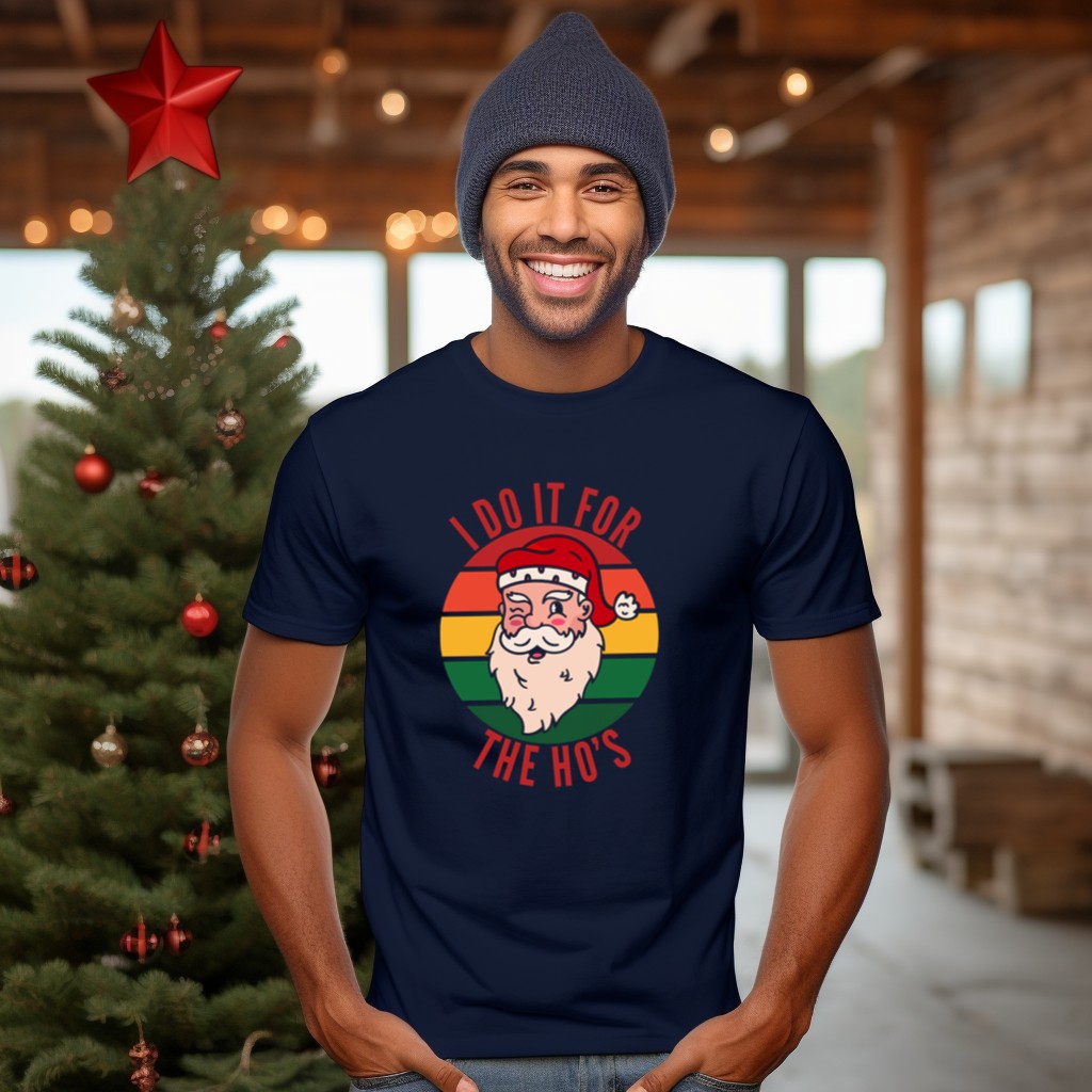 Celebrate the holiday season with a twist of humor in our “Naughty Christmas I Do It For The Ho’s” T-shirt! Perfect for those who love to spread cheer and laughter during festive gatherings, this shirt is a must-have for themed events, casual outings, or just lounging around at home. Made with love and printed in the USA, it showcases a playful design that’s sure to turn heads and spark smiles wherever you go.