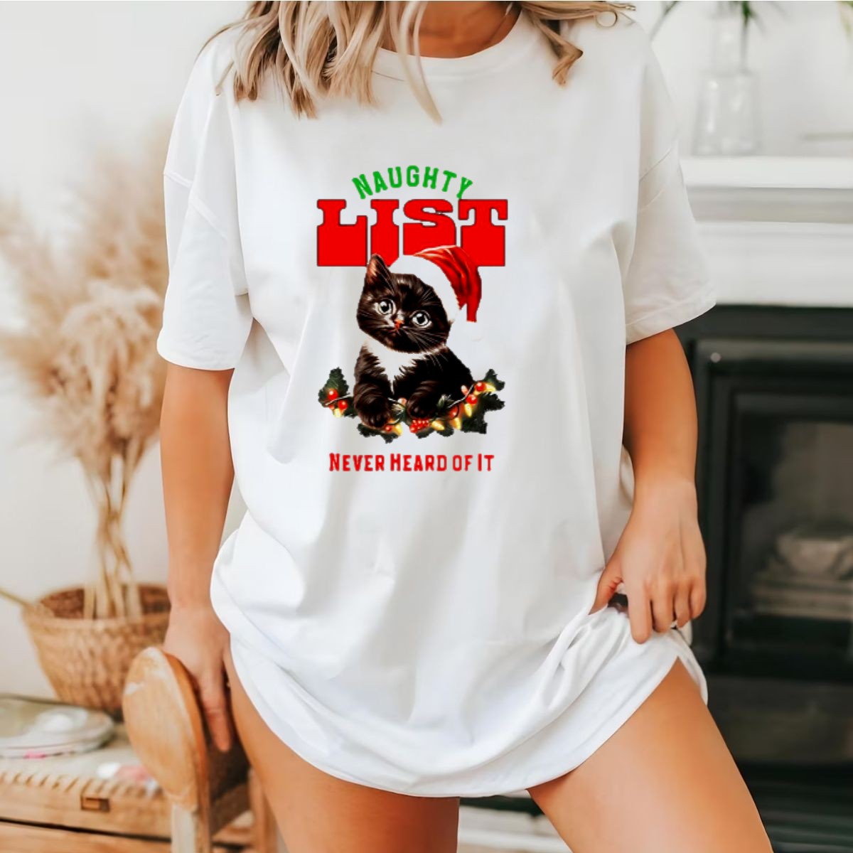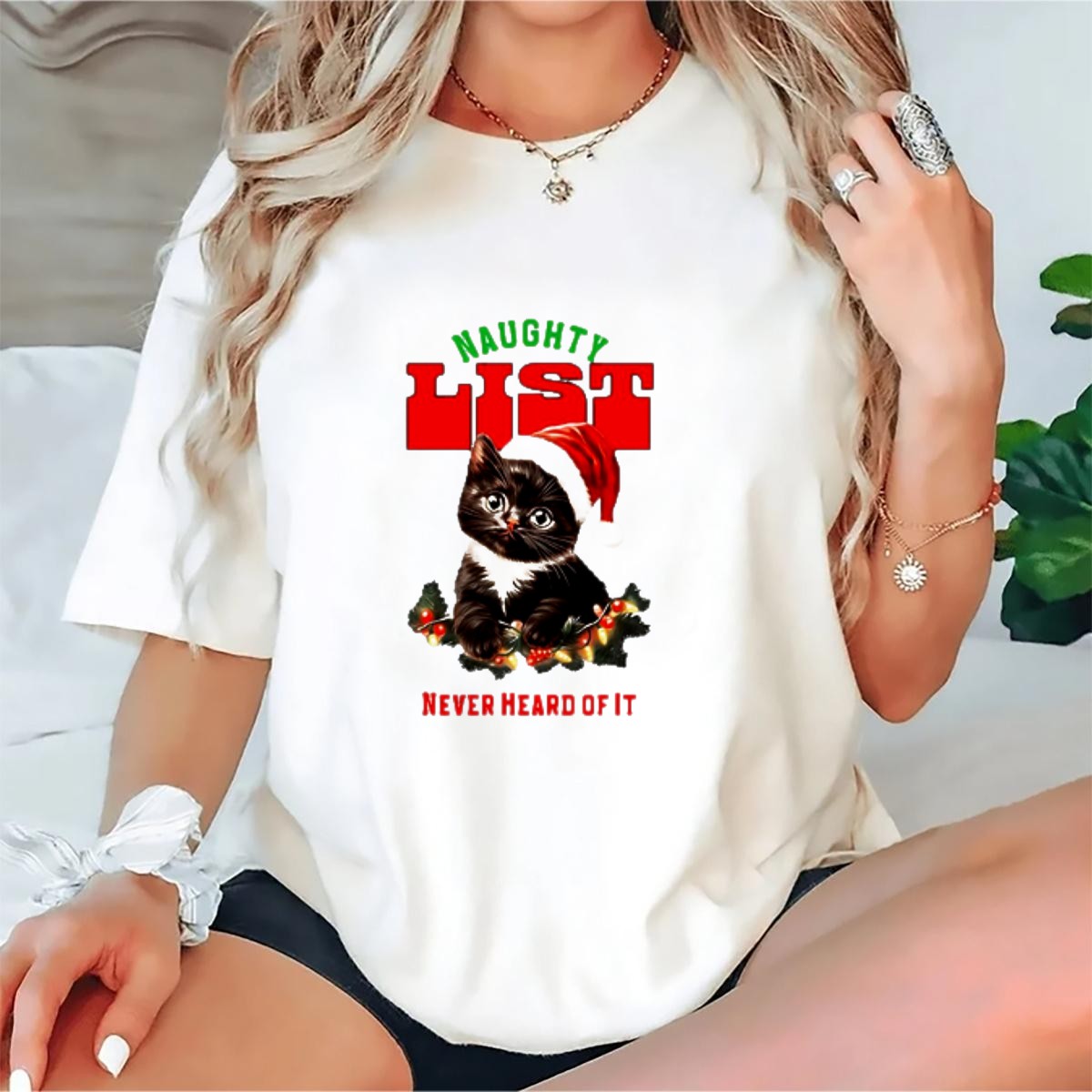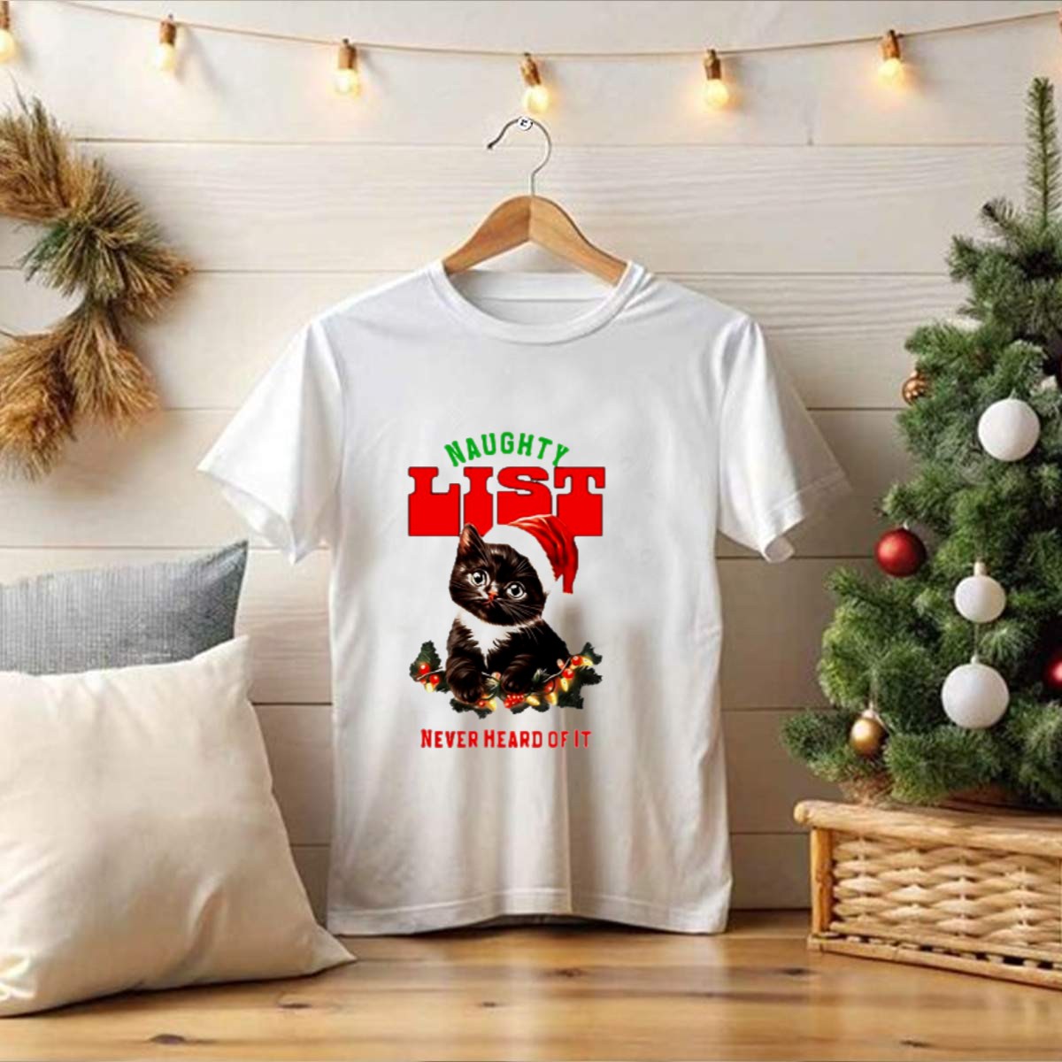 Get ready to add a touch of festive fun to your wardrobe with our “Naughty List Never Heard Of It” Christmas Cat T-Shirt! Perfect for cat lovers and holiday enthusiasts alike, this playful tee features an adorable feline donning a Santa hat, surrounded by twinkling lights. Whether you’re attending a themed event, celebrating the season with friends, or just lounging around at home, this shirt is sure to spark joy and laughter. Made for all-day comfort, it’s the perfect choice for anyone looking to showcase their holiday spirit with a dash of humor!