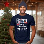 Be the first to review “Naughty Nice Crazy Plumber Christmas Santa Reindeer Sleigh Candy Cane Snowflakes T Shirt”