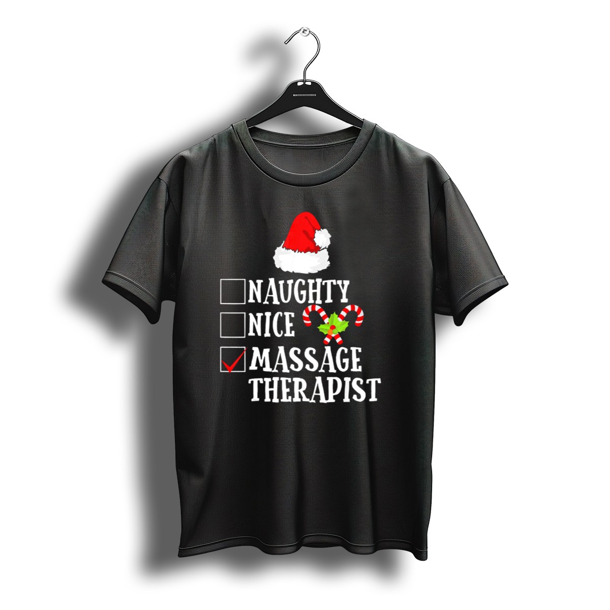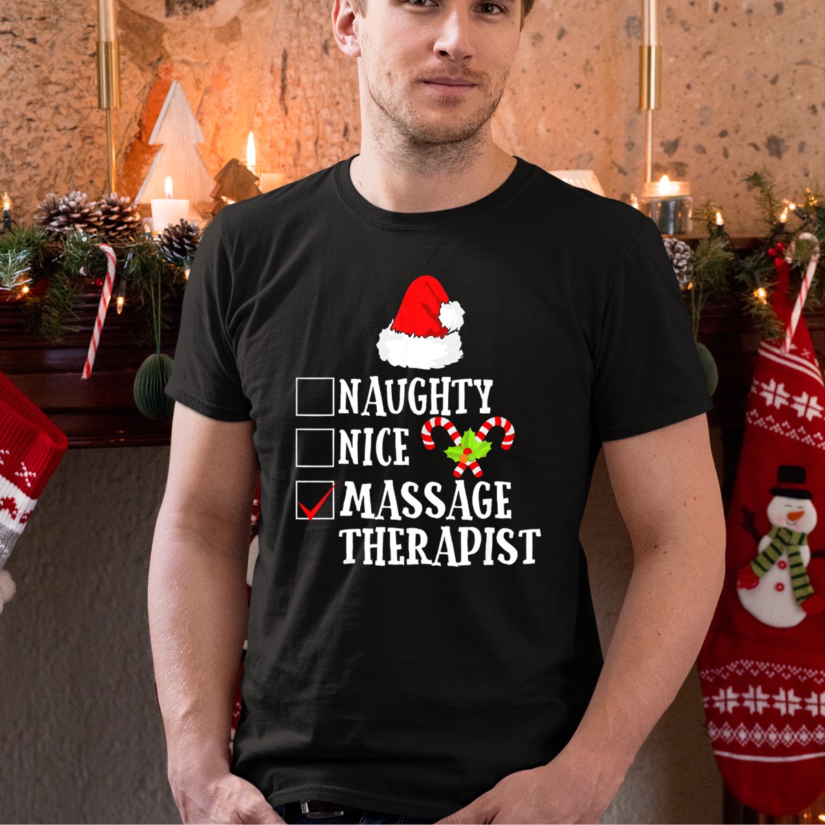 Celebrate the holiday season with our Naughty Nice Massage Therapist Santa Hat Candy Cane Christmas T-Shirt, designed for those who love to spread cheer and joy! This fun and festive tee is perfect for massage therapists, holiday parties, or casual gatherings with friends and family. The playful design captures the spirit of Christmas, making it a unique addition to your wardrobe that will surely turn heads and spark conversations!