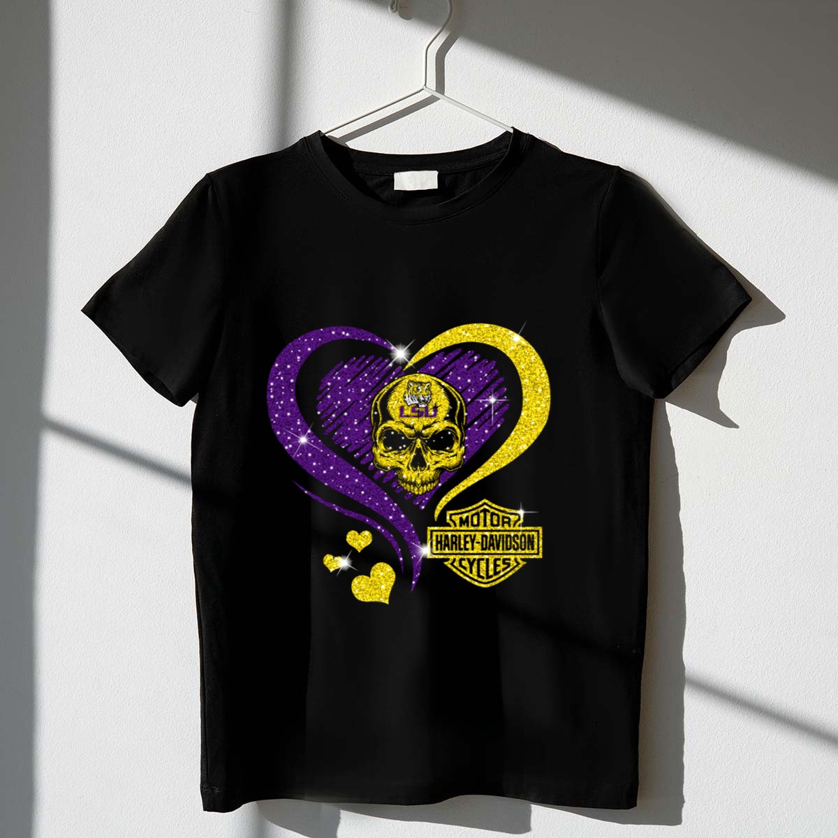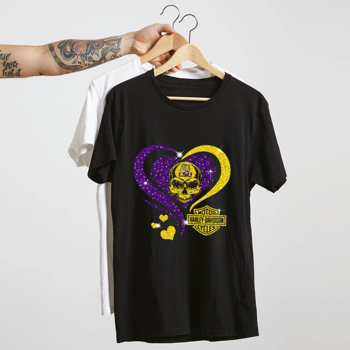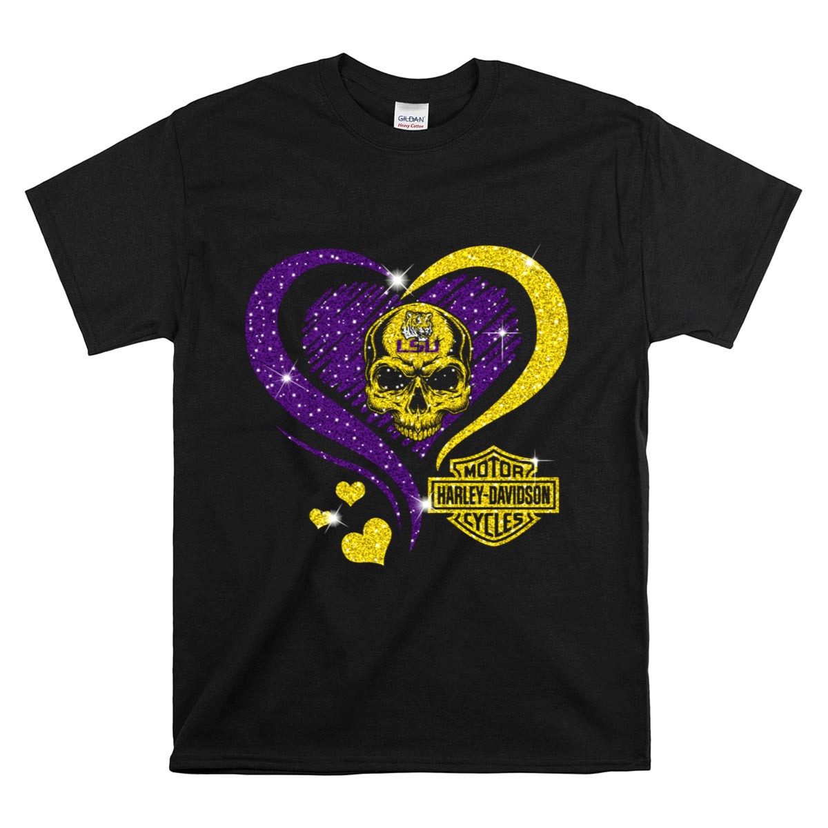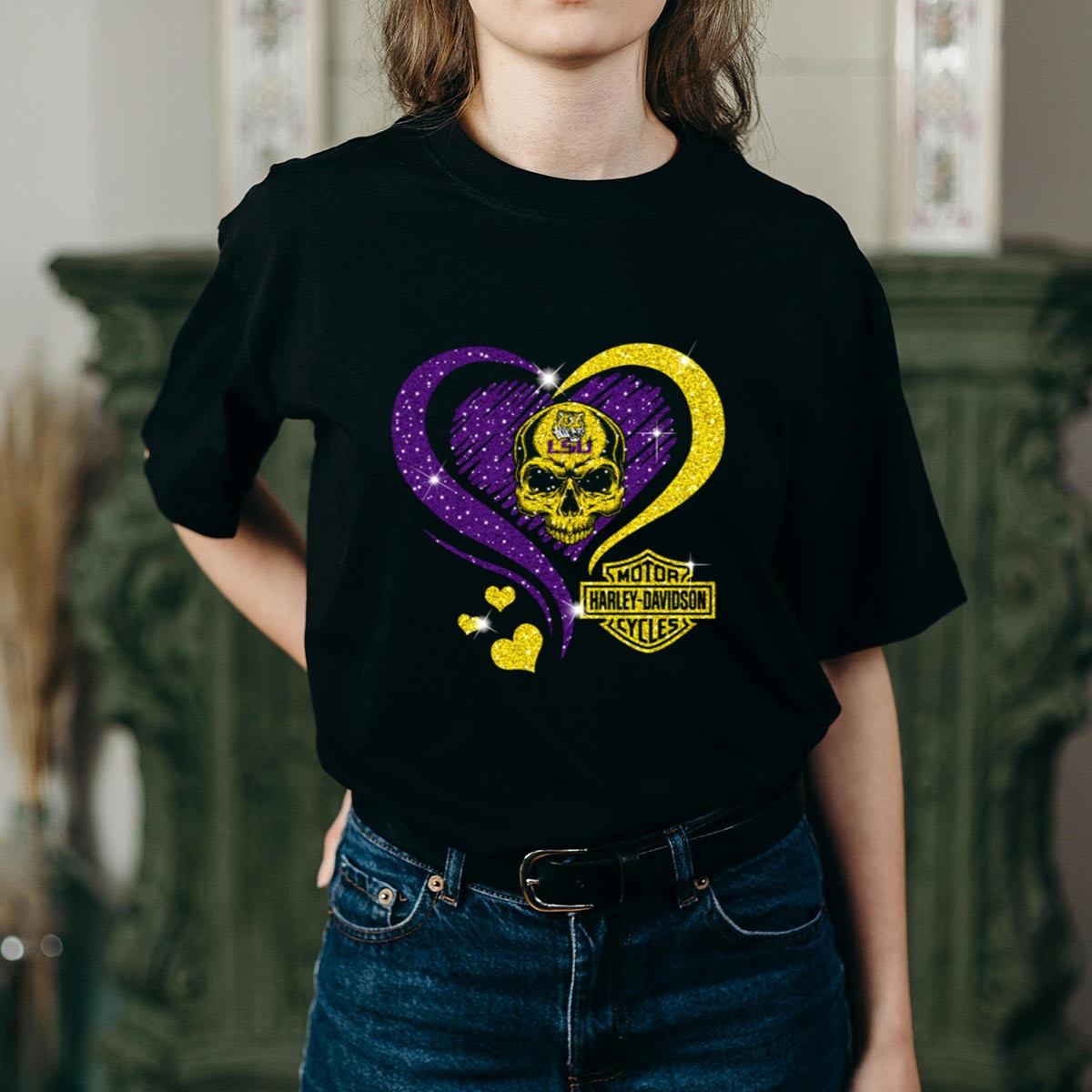 Show your fierce spirit and love for the LSU Tigers with this eye-catching Skull Heart HD Motor Cycles T-Shirt. Perfect for fans who want to stand out at games, themed events, or casual outings, this shirt combines a bold graphic design with the comfort of a classic fit. Crafted for all-season wear, it’s an essential addition to any LSU enthusiast’s wardrobe, proudly printed in the USA.