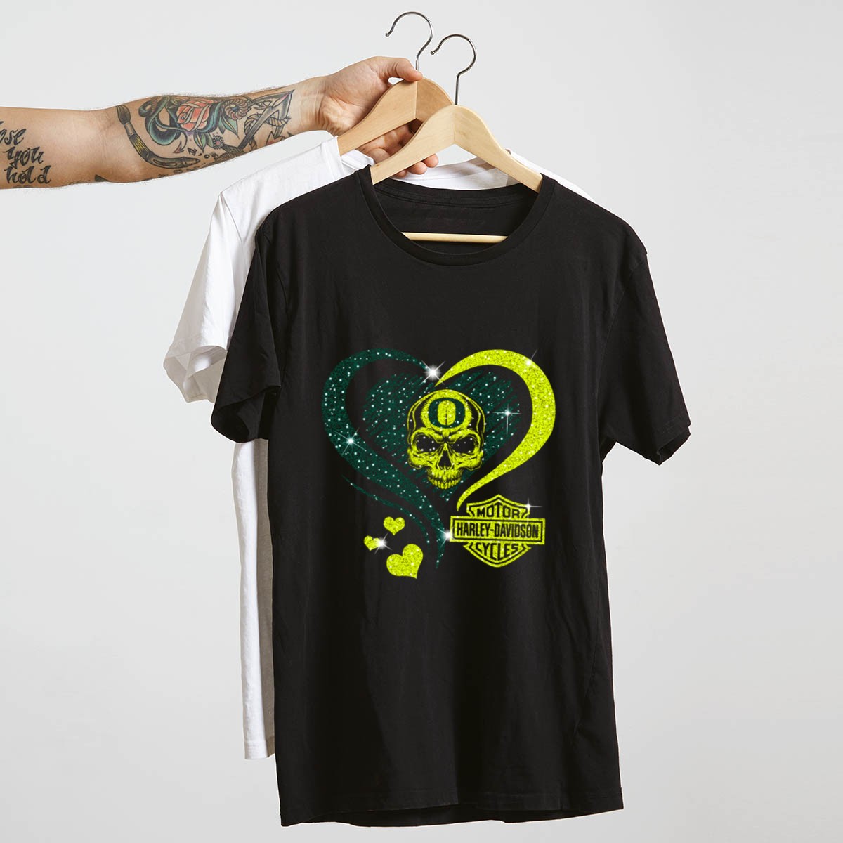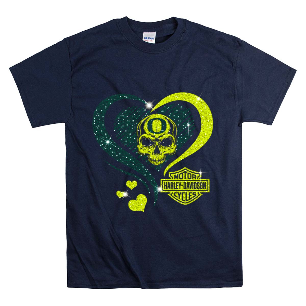Show your fierce team spirit with the NCAA Oregon Ducks Skull HD Motor Cycles Heart T-Shirt! This unique graphic tee is perfect for fans who want to stand out at games, themed events, or simply during casual outings. Made for comfort and style, this shirt combines a bold design with a classic fit, making it a must-have for any devoted Oregon Ducks supporter.