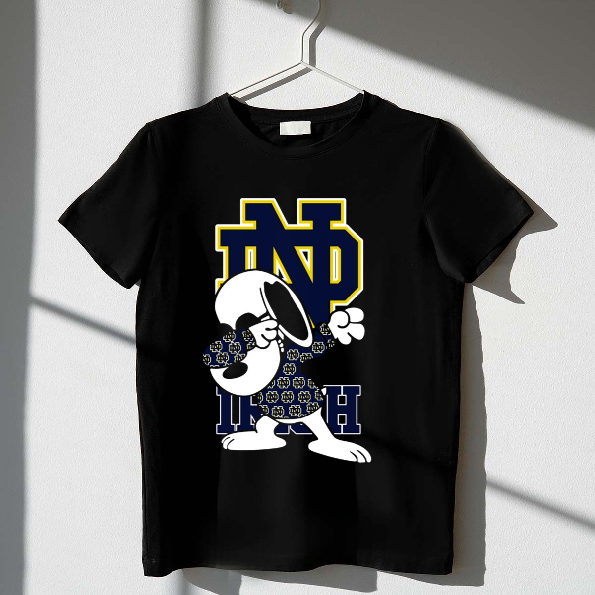 Show your spirit and love for the Notre Dame Fighting Irish with our ND Irish Snoopy Dabbing T-Shirt! This fan-made design brings a playful twist to your game day attire, making it the perfect pick for students, alumni, or any die-hard fan. Whether you’re cheering in the stands, hanging out with friends, or attending themed events, this shirt is a must-have for showcasing your pride in a fun and stylish way. Printed in the USA, it combines quality craftsmanship with a unique and eye-catching design that stands out in any crowd.