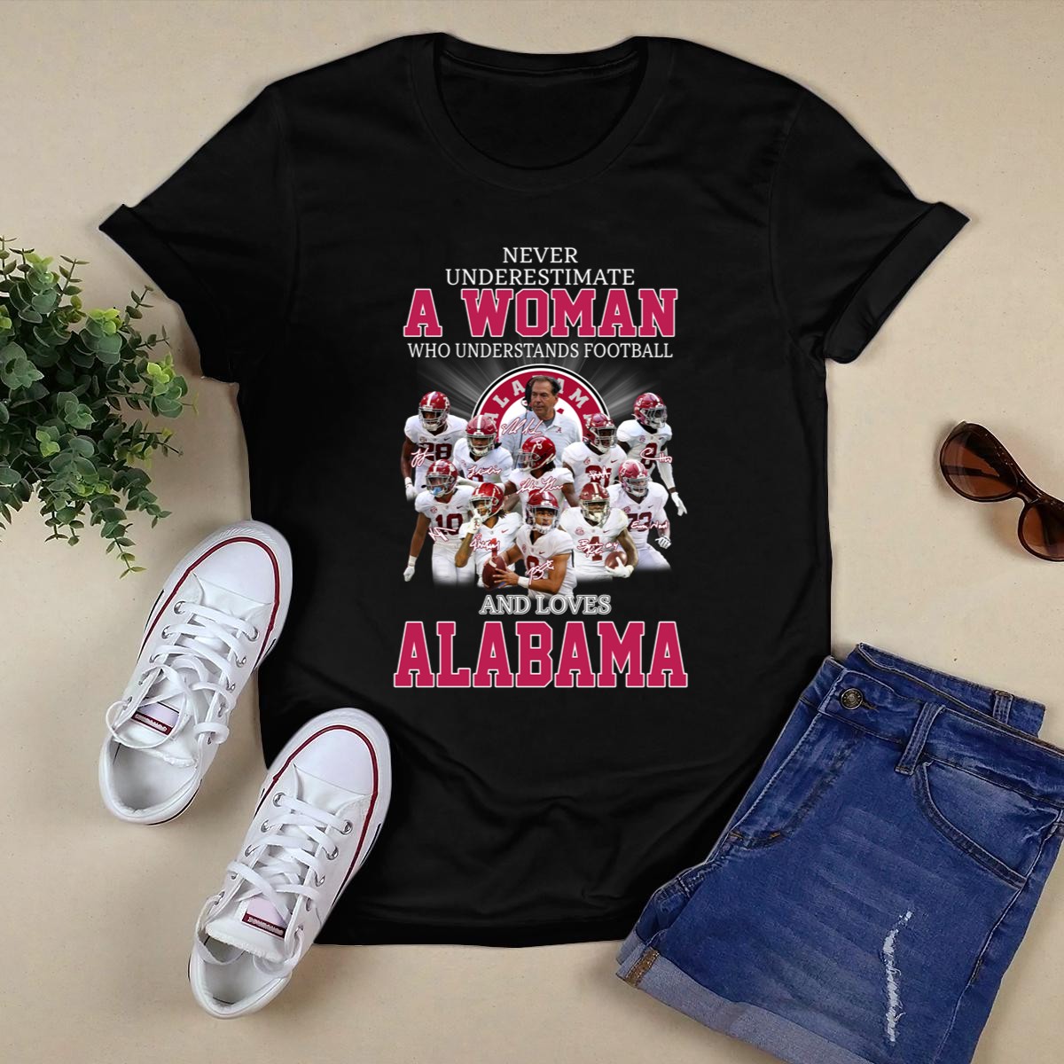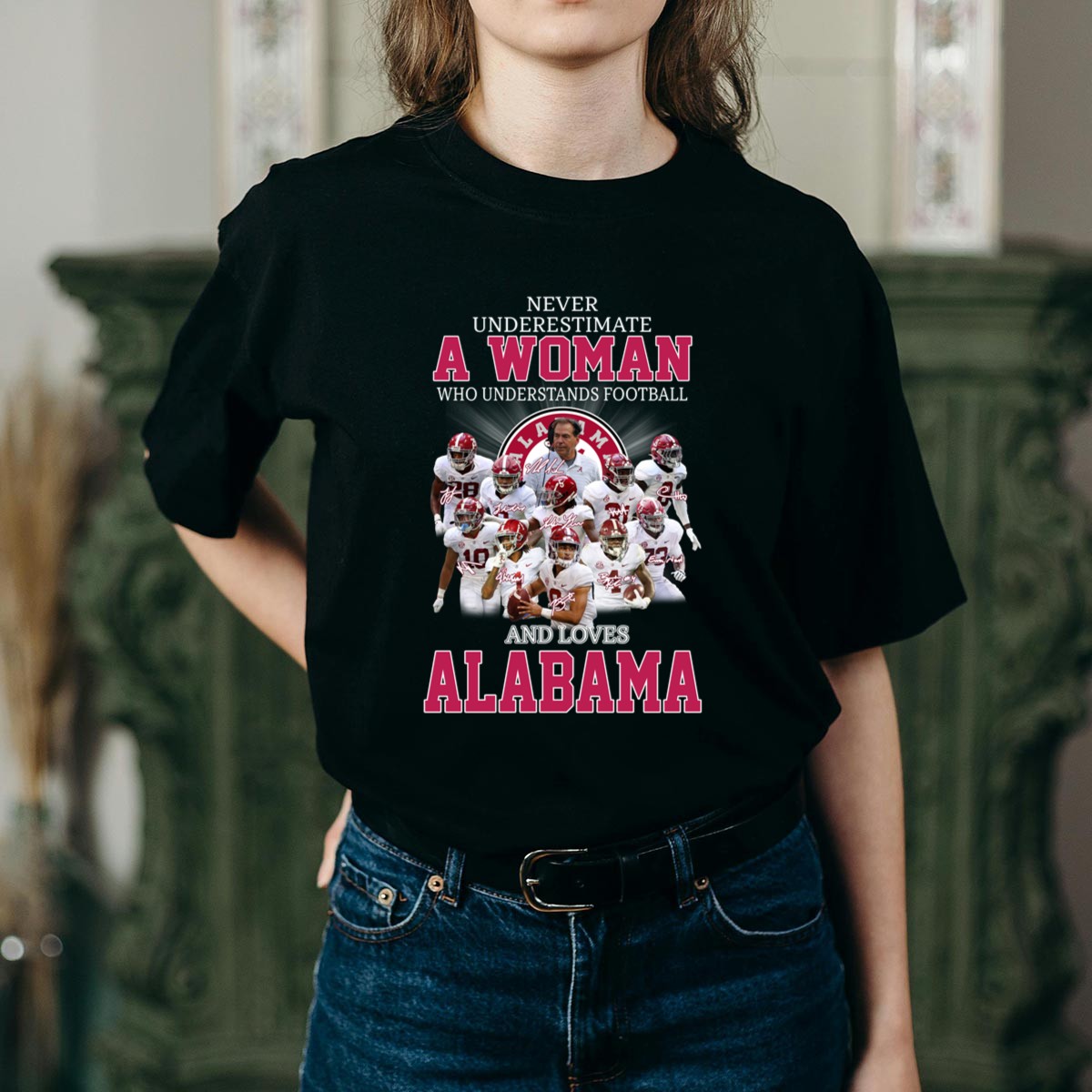 Show your true colors with our “Never Underestimate A Woman Who Understands Football And Loves Alabama” T-shirt. Perfect for passionate Alabama fans, this shirt celebrates the strength and knowledge of women in the world of football. Whether you’re cheering from the stands, hosting a game day gathering, or sporting your team spirit at casual outings, this shirt makes a bold statement about your love for the game and your team. Made in the USA, it features a unique fan-made design that stands out in any crowd.