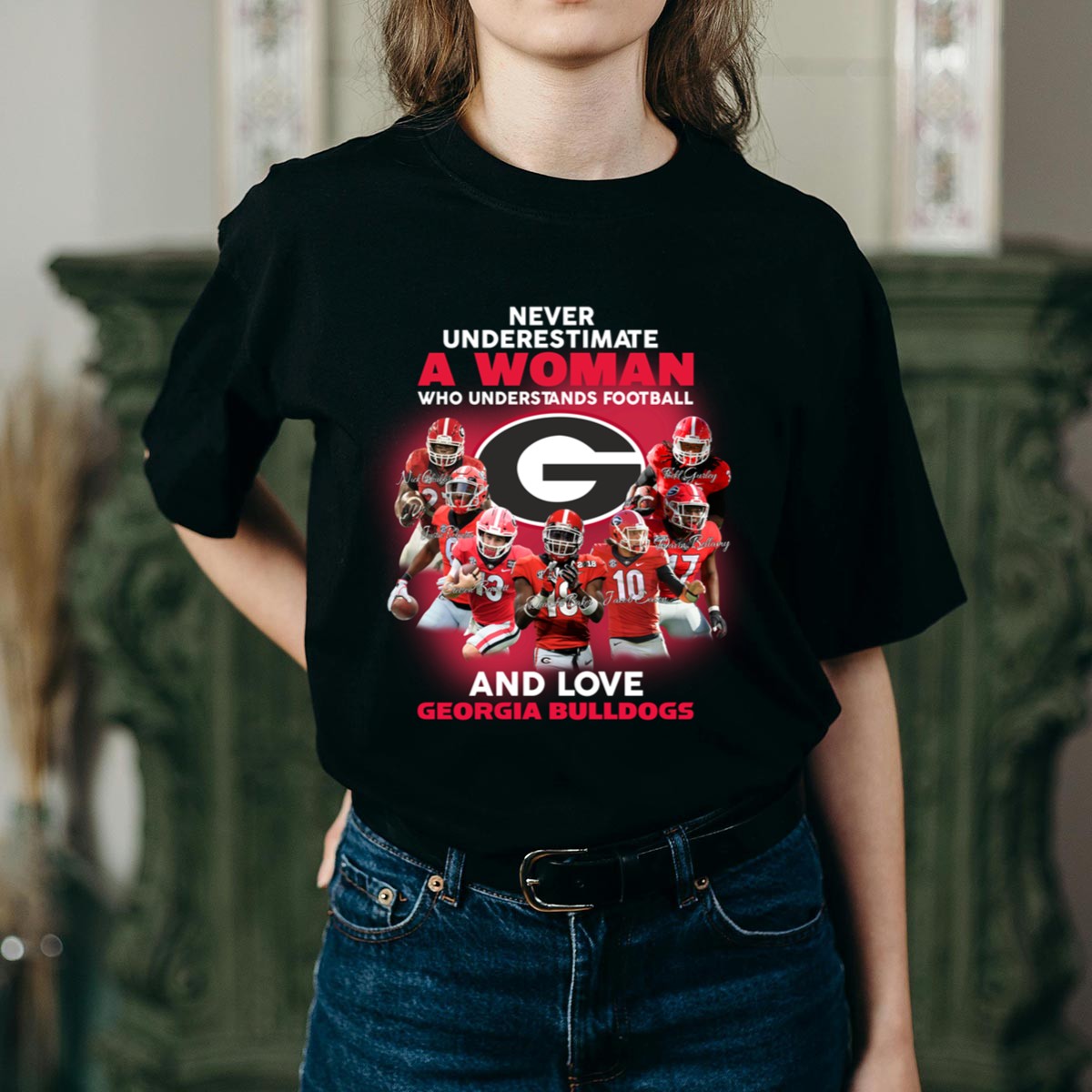 Show your team spirit and love for the game with our “Never Underestimate a Woman Who Understands Football and Loves Georgia Bulldogs” t-shirt. Perfect for passionate fans, this shirt is designed for those who want to showcase their devotion while enjoying a comfortable and stylish fit. Whether you’re cheering from the stands, hosting a game day party, or just out and about, this shirt makes a bold statement about your love for football and your favorite team. Made with care in the USA, it’s a must-have for any die-hard Georgia Bulldogs supporter!