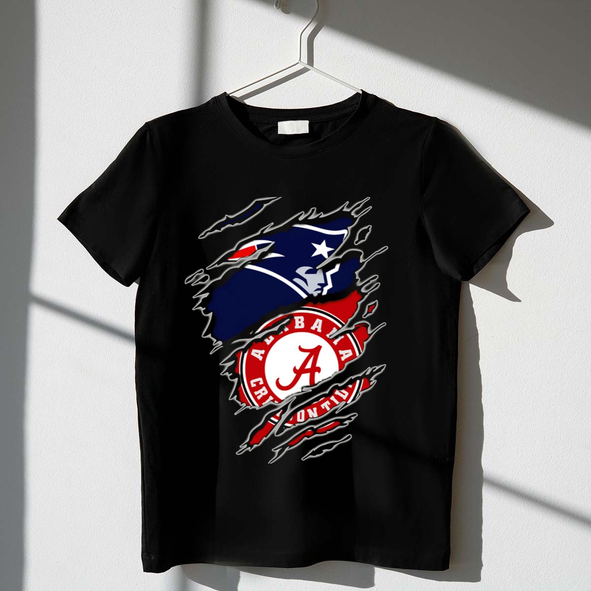 Show your unwavering support for both the New England Patriots and the Alabama Crimson Tide with this unique fan-made graphic T-shirt. Perfect for sports enthusiasts and dedicated fans alike, this shirt is designed for casual wear, themed events, and daily outings. Its comfortable fit and breathable material ensure you stay stylish and cool, whether you’re cheering from the stands or hanging out with friends. Proudly printed in the USA, this classic tee is a must-have for anyone looking to showcase their dual allegiance in a fun and fashionable way.