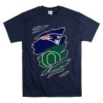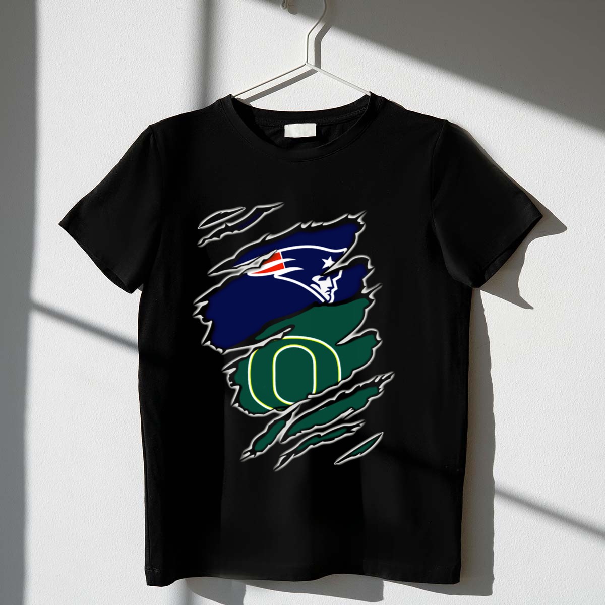 Show off your team spirit with the New England Patriots and Oregon Ducks Logos Torn Claw Marks Display T-Shirt! Perfect for die-hard fans, this unique fan-made design features a striking visual that showcases the pride of both teams. Ideal for casual wear, themed events, or daily outings, this shirt is a must-have for any sports enthusiast looking to make a statement. Printed in the USA, it embodies quality and passion for your favorite teams!