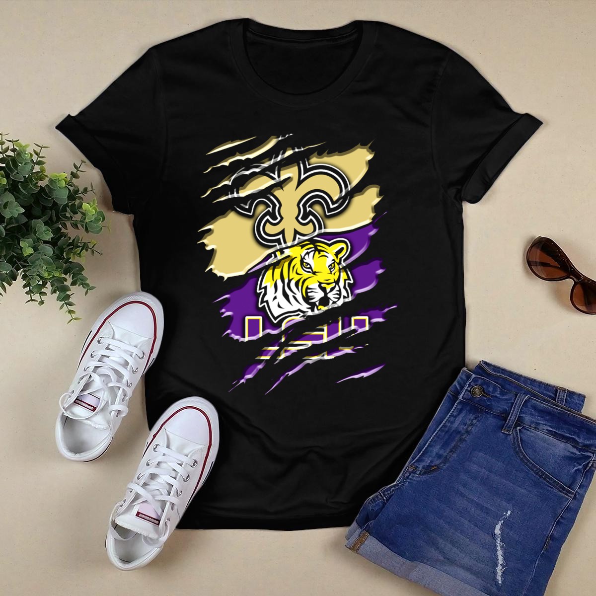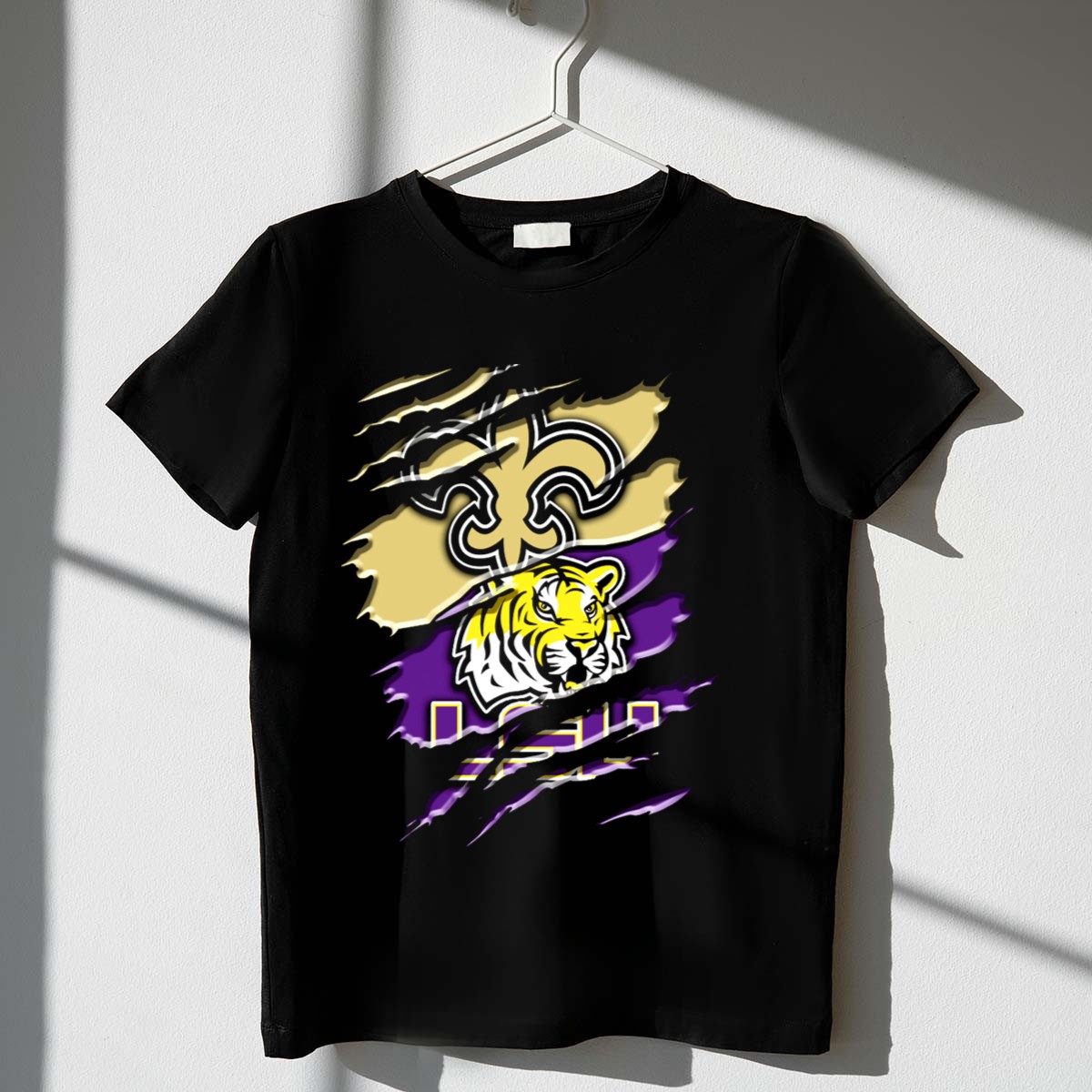 Show your team spirit with the New Orleans Saints and LSU Tigers Rah 107 T-Shirt! This fan-made design is perfect for anyone who loves to support their favorite teams in style. Whether you’re heading to a casual gathering, a themed event, or just enjoying a day out, this shirt adds a unique touch to your wardrobe while showcasing your loyalty. Crafted for comfort and durability, it’s a must-have for any true sports fan!