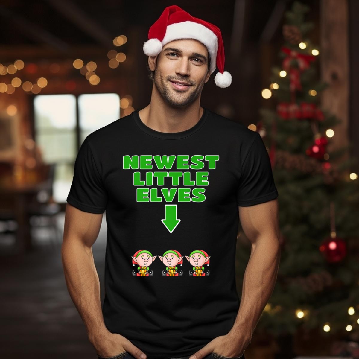 Celebrate the magic of the holiday season with our “Newest Little Elves Christmas Elf Expecting Triplets Mom To Be Pregnant” T-shirt! This delightful design is perfect for expecting moms who want to share their joy during festive gatherings, themed events, or simply on a cozy day at home. Made with love and printed in the USA, this shirt stands out with its whimsical elf theme, bringing cheer and warmth to every occasion. Whether you’re decorating the tree or attending a holiday party, this classic fit tee ensures you do it in style!