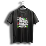 Get into the festive spirit with our “Nice Naughty Innocent Until Proven Guilty” graphic T-shirt, perfect for those who love to celebrate the holiday season with a twist of humor! This fan-made design showcases a playful take on Christmas themes, making it an ideal choice for casual wear, themed events, or simply spreading cheer during the holidays. Crafted for comfort and style, this unique tee is sure to become a favorite in your seasonal wardrobe.