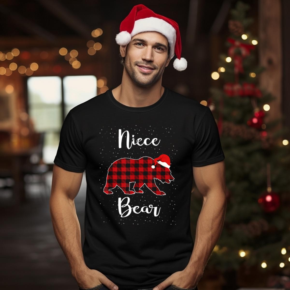 Celebrate the joy of the holiday season with our Niece Bear Christmas Plaid Family Santa Hat T-Shirt! Perfect for those cozy family gatherings, this adorable shirt showcases a charming design that brings smiles to everyone around. Made for the fun-loving niece in your life, it’s ideal for casual wear, themed events, and daily outings. Embrace the festive spirit in style with this fan-made design, proudly printed in the USA, that combines comfort and holiday cheer.