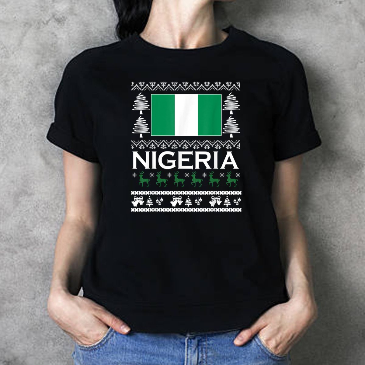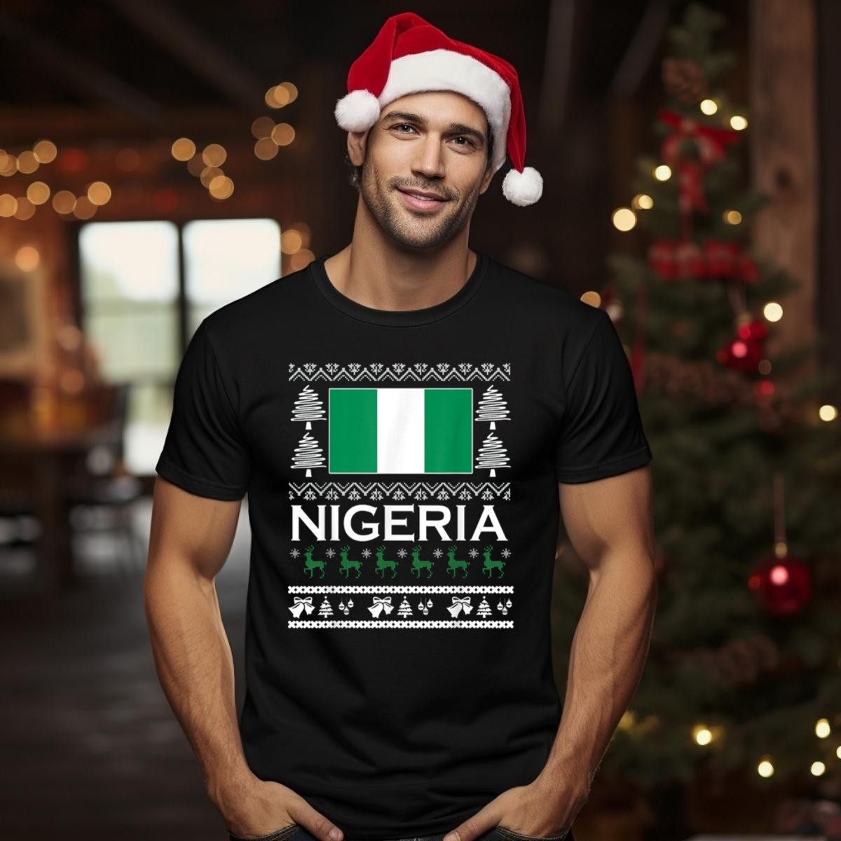 Celebrate the festive season with a touch of Nigerian pride in our Nigerian Flag Nigeria Christmas Sweater Festive T-Shirt. Perfect for anyone who wants to showcase their heritage while enjoying casual gatherings, themed events, or daily wear, this unique fan-made design is printed in the USA for exceptional quality. Whether you’re attending a holiday party or lounging at home, this shirt combines comfort and style, making it a must-have for every celebration!