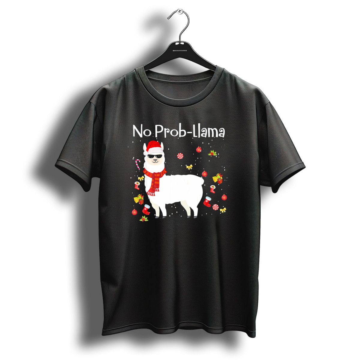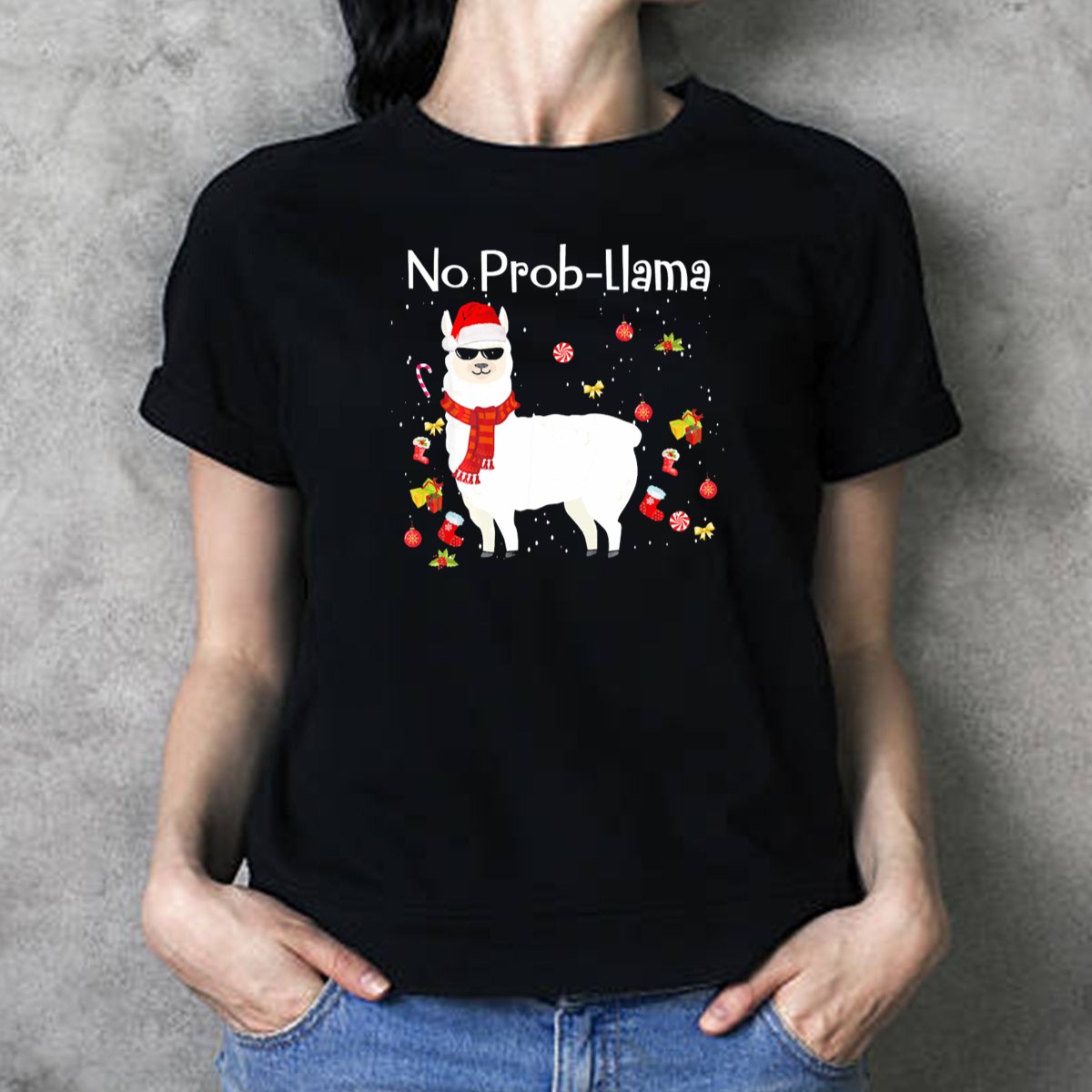 No Prob Llama Christmas Santa Hat Candy Canes Sunglasses Gifts T Shirt