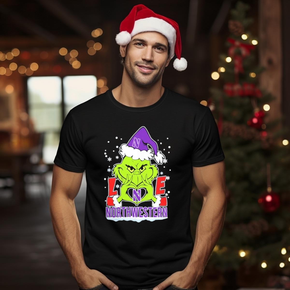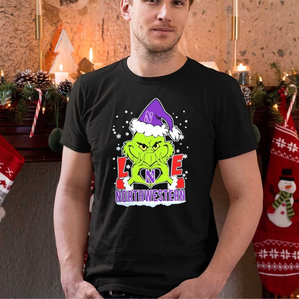 Northwestern Wildcats Grinch Love Christmas 2024 Football T-Shirt