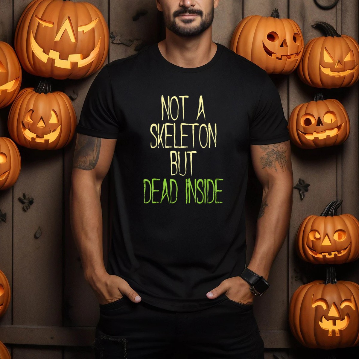 Embrace the spooky season with our “Not A Skeleton But Dead Inside” Halloween Humor T-Shirt, perfect for those who appreciate a clever twist on Halloween fun. This shirt is designed for anyone who loves to celebrate the holiday with a touch of humor, making it ideal for casual wear, themed events, or just lounging around. With its fan-made design printed right here in the USA, this tee stands out for its unique blend of comfort and wit!