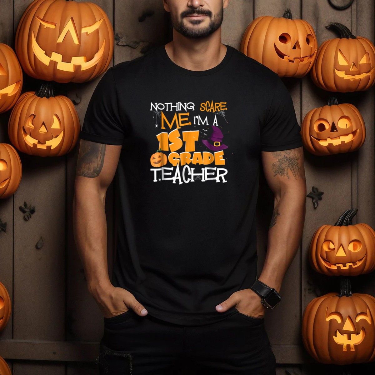 Celebrate the spirit of Halloween with our “Nothing Scares Me I’m A 1st Grade Teacher” T-shirt, designed specifically for passionate educators who embrace the fun side of teaching! This playful shirt features a whimsical pumpkin and witch hat graphic that perfectly captures the joy of the season while showcasing your dedication to your students. Ideal for casual wear, themed events, or daily classroom activities, this shirt is a must-have for any teacher looking to add a festive touch to their wardrobe. Made with love and printed in the USA, it’s as unique as the teachers who wear it!