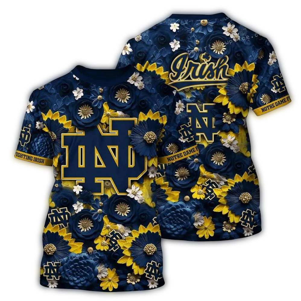 Show your spirit and style with our Notre Dame Fighting Irish Flower Blossom Pattern All Over Print T-Shirt! Perfect for fans and fashion enthusiasts alike, this shirt combines team pride with a unique floral twist, making it an excellent choice for casual outings, game days, or simply expressing your love for the Fighting Irish in a fun way.