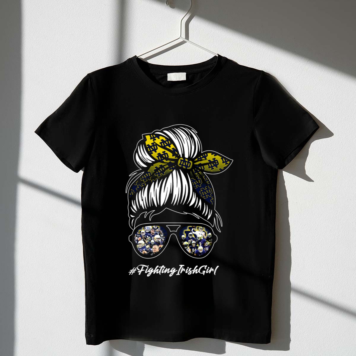 Show your unwavering support for the Notre Dame Fighting Irish with our exclusive FightingIrishGirl T-Shirt. Perfect for die-hard fans, this shirt is designed for casual wear, themed events, or simply cheering from the stands. Made from 100% cotton, it combines comfort with durability, ensuring you stay stylish while showcasing your team pride. With its fan-made design printed right here in the USA, this shirt is a must-have for any dedicated supporter of Notre Dame football.