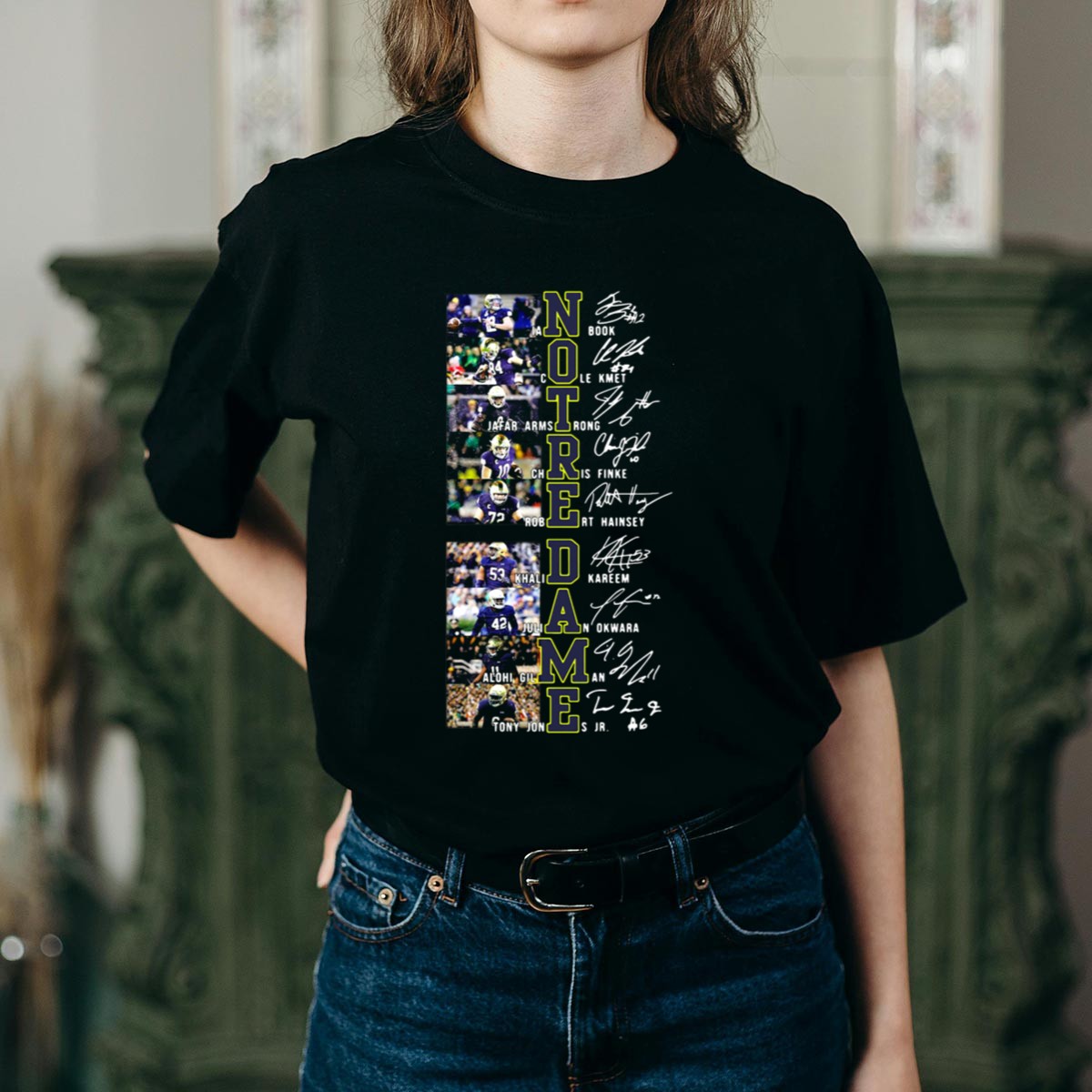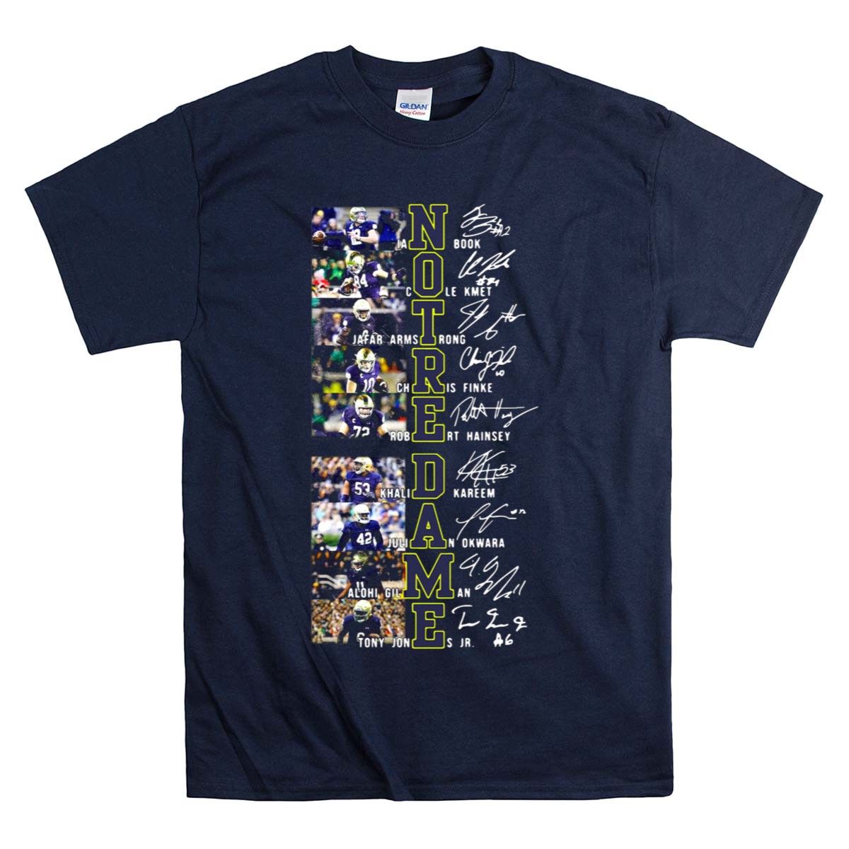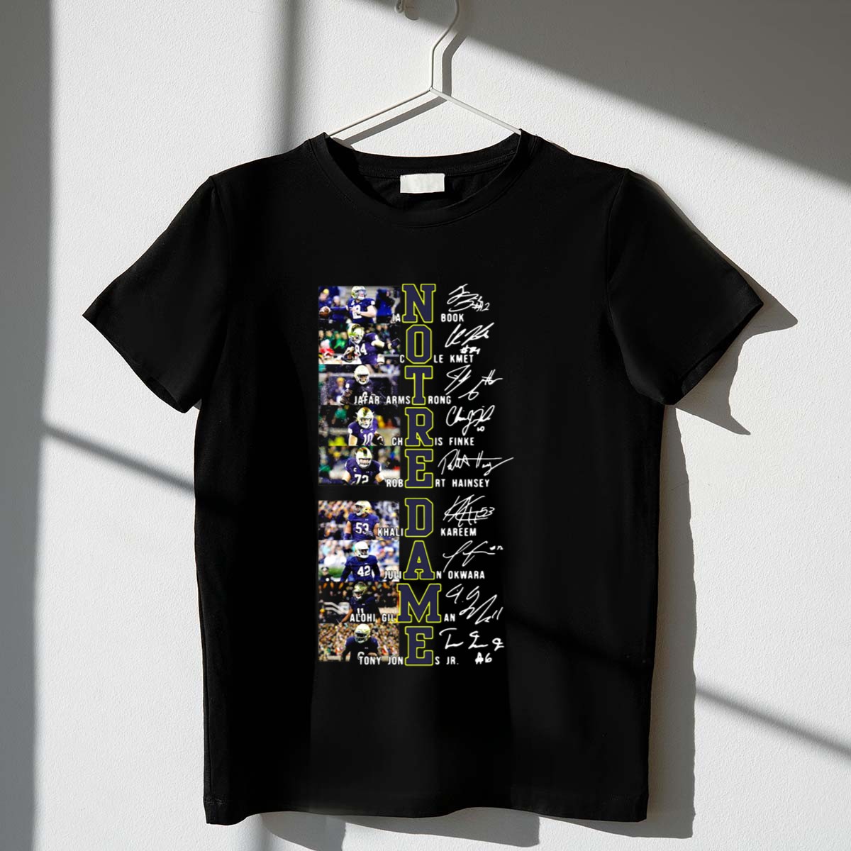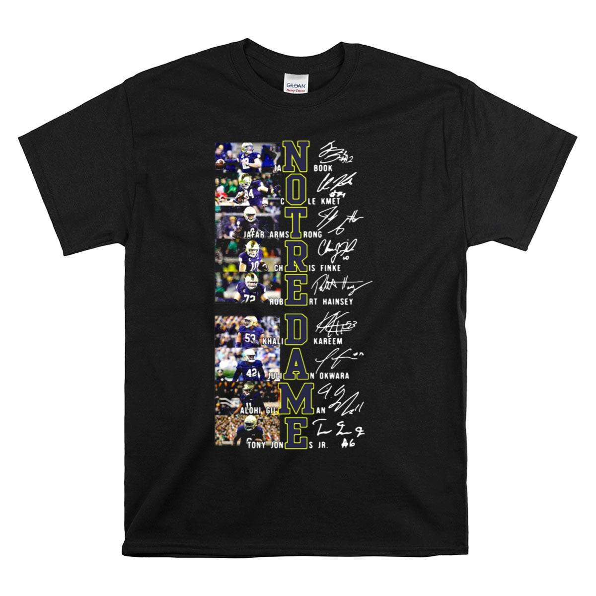 Show off your unwavering support for the Notre Dame Fighting Irish with this exclusive fan-made T-shirt featuring the signatures of your favorite football stars. Perfect for game days, themed events, or casual outings, this classic fit tee combines style and comfort for every devoted fan. Proudly printed in the USA, it’s an essential addition to any Fighting Irish enthusiast’s wardrobe.