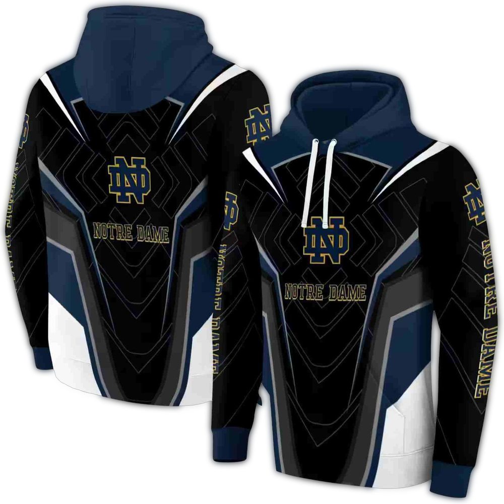 Show your unwavering support for the Notre Dame Fighting Irish with this Futuristic Pattern All Over Print Hoodie. Perfect for fans of all ages, this hoodie combines sporty style and comfort, making it ideal for casual outings, game days, or simply lounging at home. Its unique all-over print design stands out, showcasing your team spirit in a modern way.