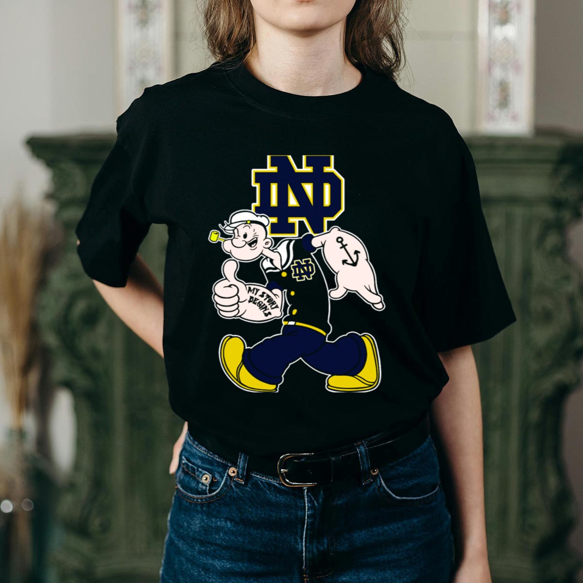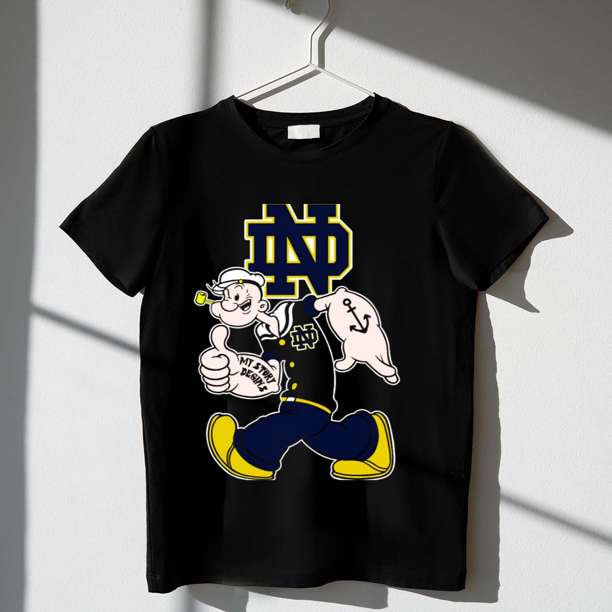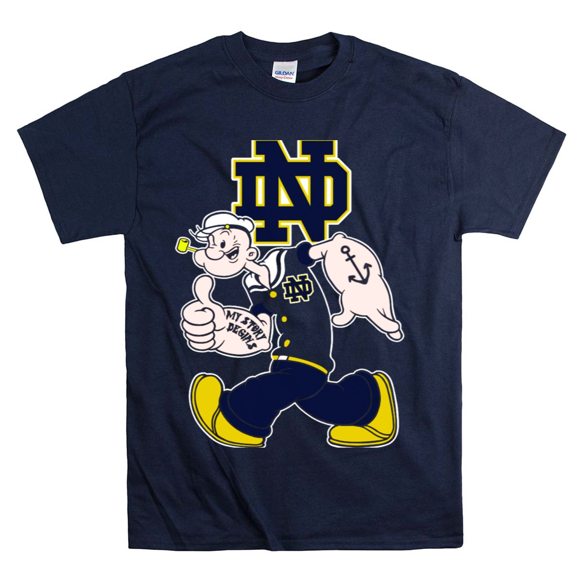 Show your support for the Notre Dame Fighting Irish with this exclusive “Nd Popeye My Story Begins” T-shirt. Perfect for fans of all ages, this shirt combines a love for college football with a fun twist, making it an ideal choice for casual outings, themed events, or daily wear. Crafted with a soft and breathable fabric, it’s designed for comfort while showcasing your spirited personality. Stand out with this unique fan-made design, proudly printed in the USA!