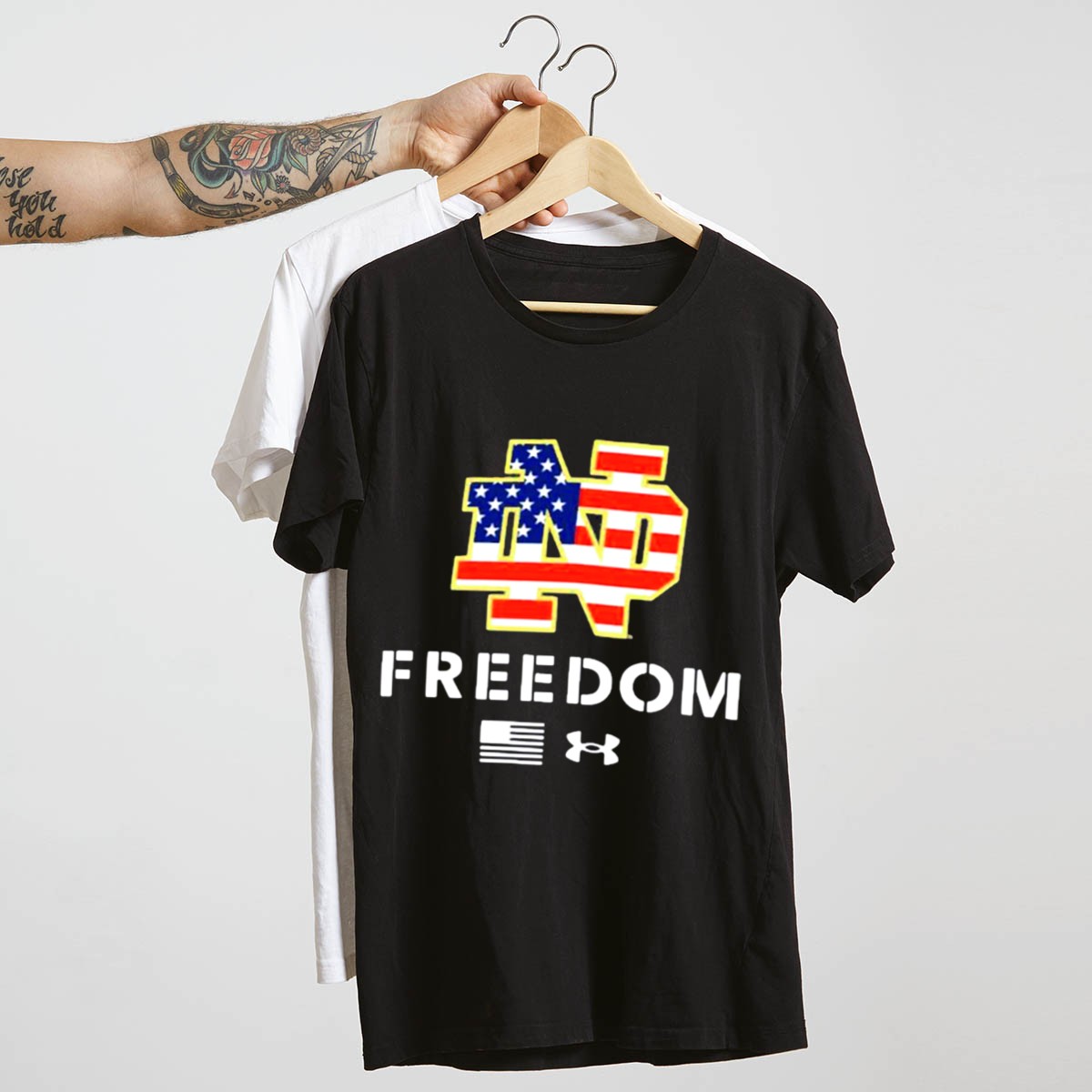 Celebrate your passion for the Notre Dame Fighting Irish with this stunning ND Stars and Stripes Freedom T-Shirt. Designed for true fans, this shirt is perfect for casual outings, themed events, or simply showing your pride on game day. Crafted with an eye-catching fan-made design and printed in the USA, it combines comfort and style, making it a must-have addition to any Fighting Irish supporter’s wardrobe.