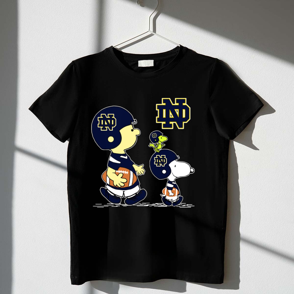 Show your love for the Notre Dame Fighting Irish with this unique Peanuts Characters Football Helmets T-shirt! Perfect for fans of all ages, this shirt combines classic comic charm with your favorite college team spirit. Whether you’re heading to a game, a casual outing, or a themed event, this shirt is a fun way to showcase your loyalty while staying comfortable and stylish.