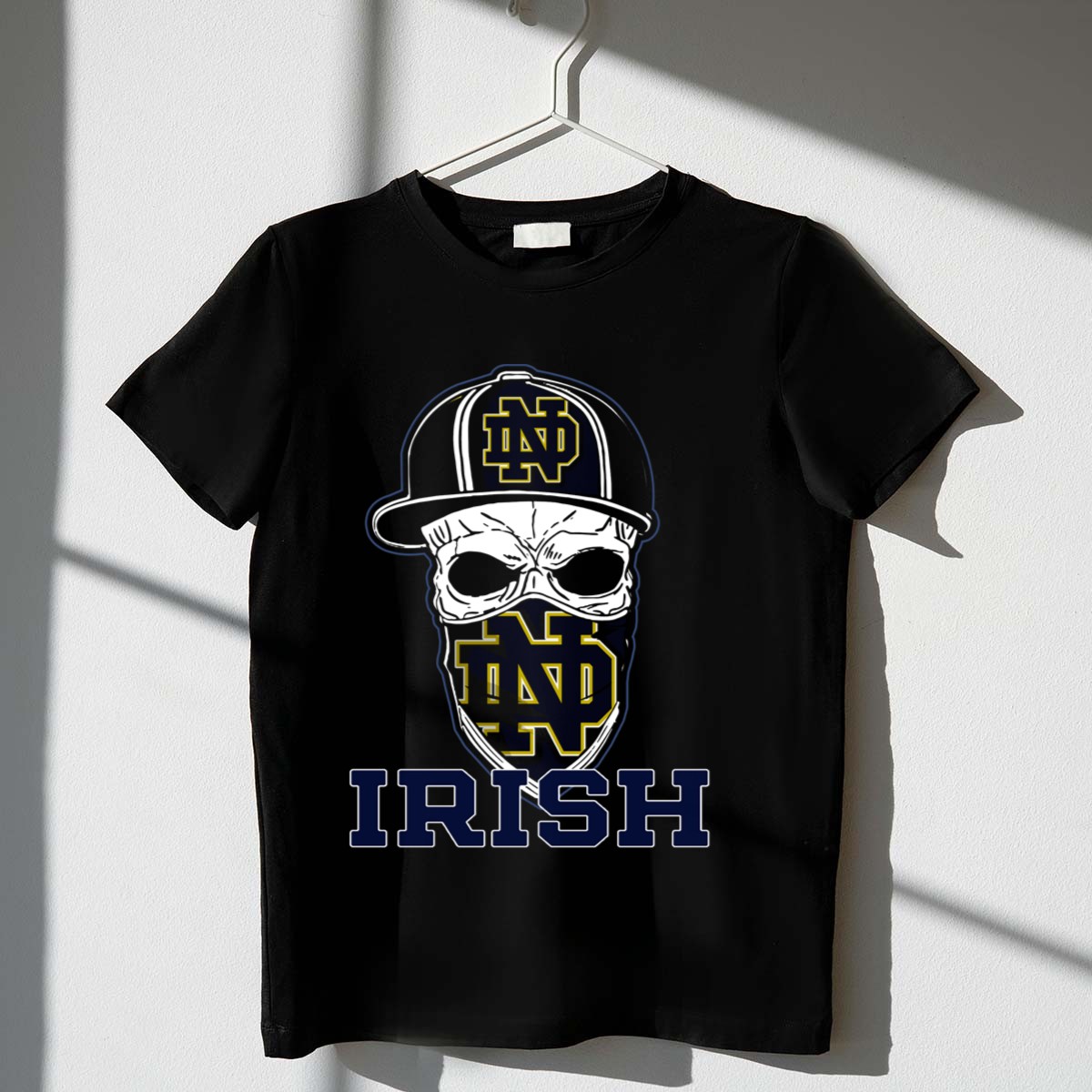 Show your spirit and stand out with the Notre Dame Fighting Irish Skull Hat T-Shirt, designed for true fans who celebrate their passion for the Fighting Irish. This eye-catching tee is perfect for casual outings, themed events, or simply rocking your pride daily. With its unique fan-made design printed in the USA, this shirt combines style and comfort, making it a must-have for any Notre Dame enthusiast.