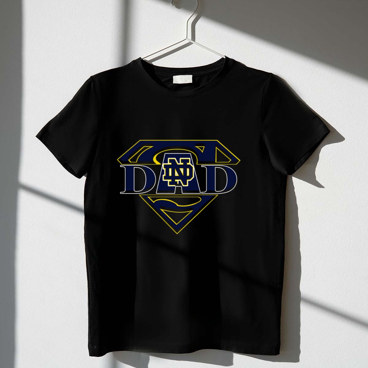 Show your support for the Notre Dame Fighting Irish with our Super Dad Logo DAD ND T-Shirt, designed for the proud fathers who are fans at heart. Perfect for casual outings, themed events, or everyday wear, this shirt combines comfort with a bold statement of team spirit. Made with love and printed in the USA, it’s the ideal gift for any dad who cheers for the Irish, bringing together a classic fit and a fan-made design that stands out on every occasion.