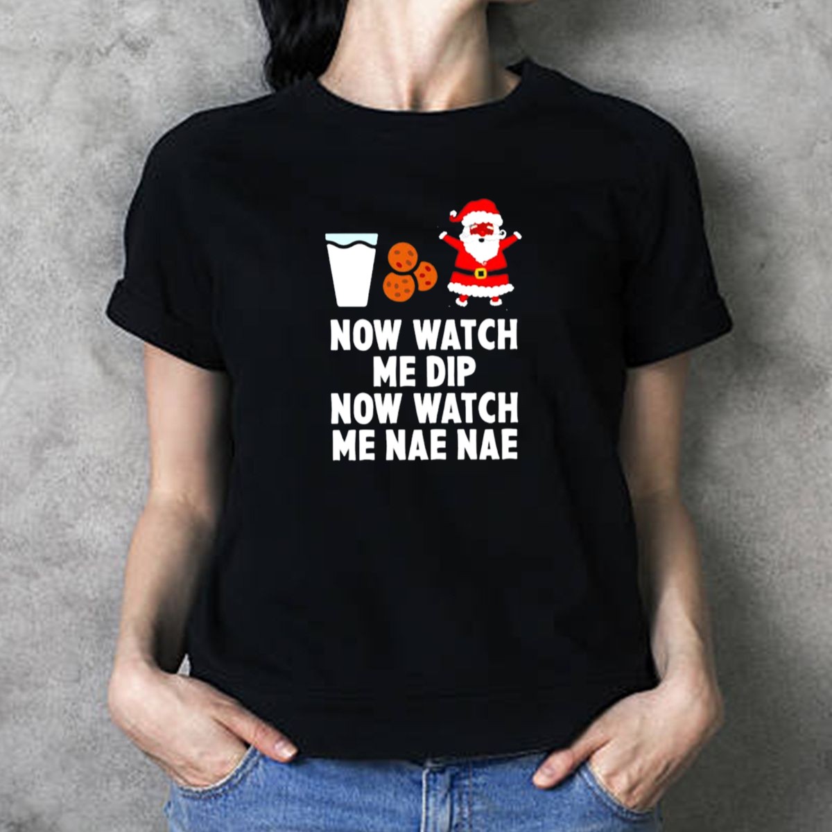 Celebrate the festive season with our “Now Watch Me Dip Now Watch Me Nae Nae Christmas Cookies Milk Santa T-Shirt”! Perfect for all the fun-loving individuals who want to spread holiday cheer, this shirt features a playful design that combines the joy of Christmas with a catchy dance theme. Ideal for casual wear, themed events, or simply enjoying a cozy day at home, this fan-made shirt is printed in the USA and is sure to become a favorite in your holiday wardrobe.