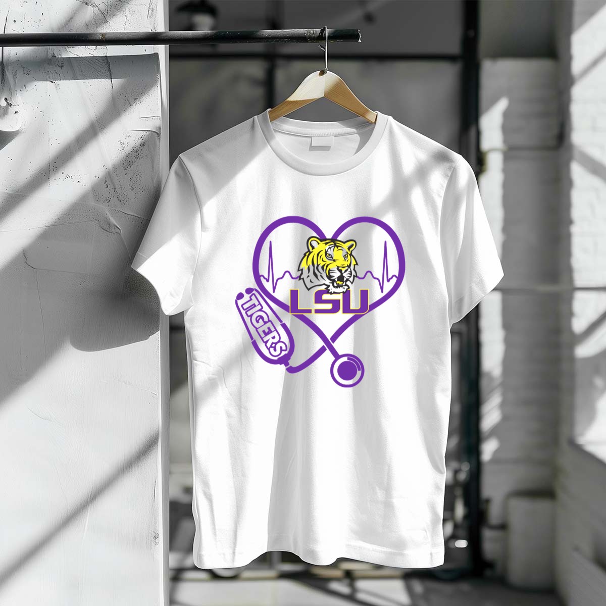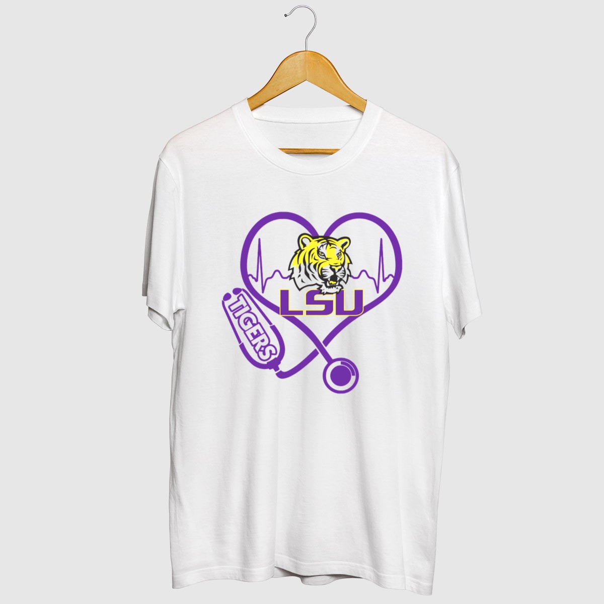 Show your passion for nursing and your love for the LSU Tigers with our Nurse Love LSU Tigers Heartbeat Stethoscope Tiger T-Shirt! This fun and spirited shirt is perfect for nurses, healthcare professionals, and devoted LSU fans alike. Whether you’re at a themed event, on the job, or just enjoying a casual day out, this shirt combines comfort with a unique fan-made design that proudly showcases your love for both your profession and your team. Made in the USA, it’s a must-have for any LSU Tigers enthusiast!