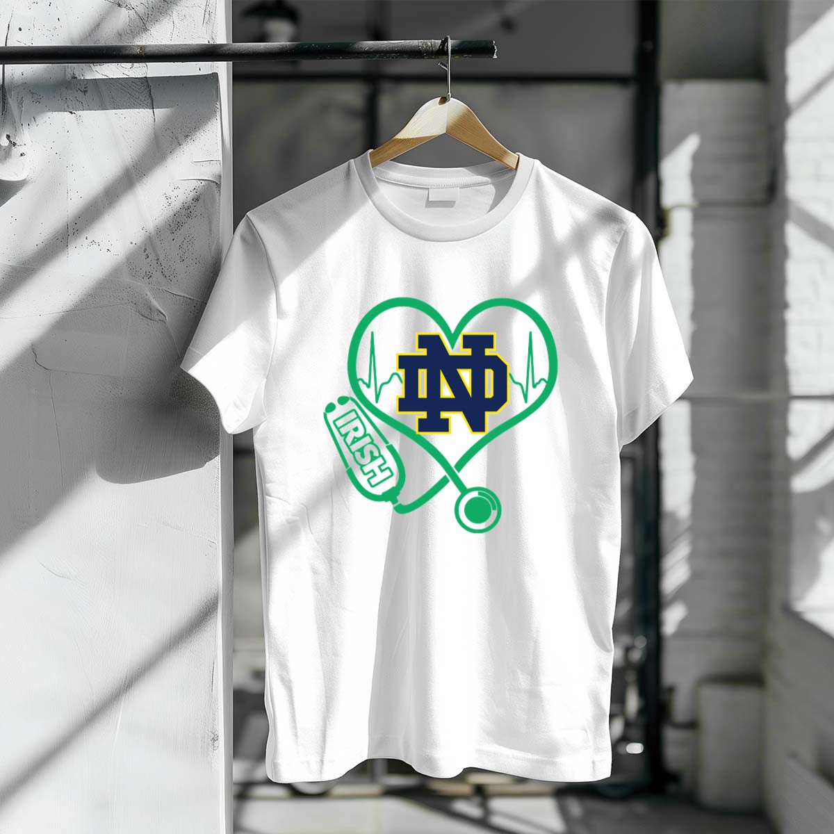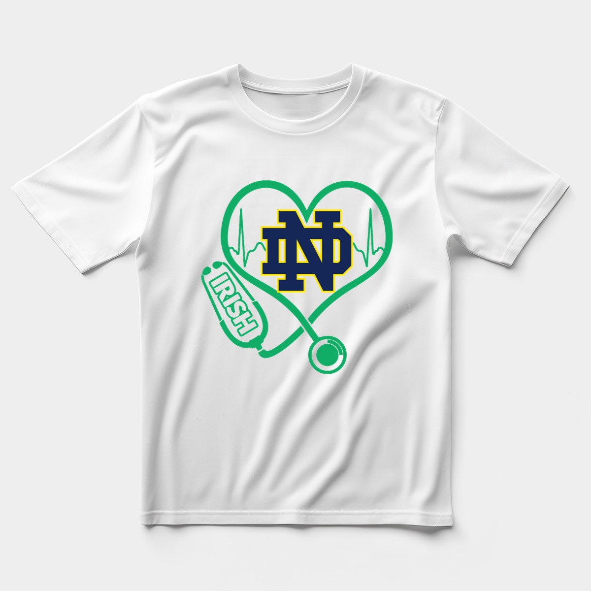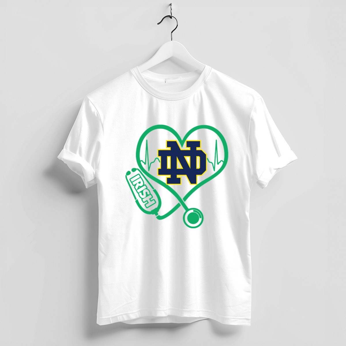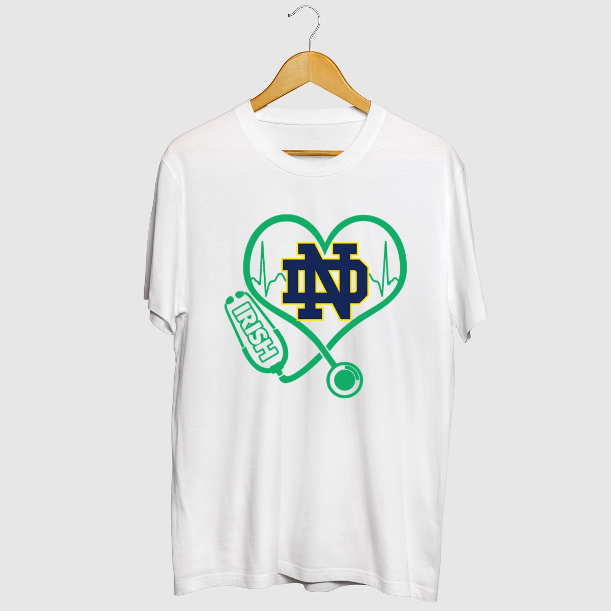 Show your love for nursing and your passion for the Notre Dame Fighting Irish with this unique Nurse Love ND Irish Heartbeat Stethoscope T-Shirt. Perfect for nurses, healthcare professionals, and passionate fans alike, this shirt is ideal for casual outings, themed events, or simply showcasing your team spirit in your daily wear. With its fan-made design proudly printed in the USA, it’s a standout piece that combines comfort and team pride.