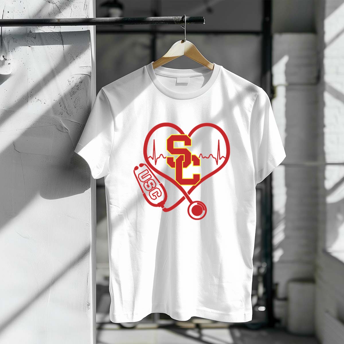 Show your love for nursing and your team with our Nurse Love SC USC Trojans Heartbeat Stethoscope T-Shirt! This fan-made design is perfect for dedicated nurses and USC Trojans supporters alike. Whether you’re at a themed event, running errands, or just relaxing at home, this classic-fit tee combines comfort and style in a unique way that celebrates your passion for healthcare and school spirit. Proudly printed in the USA, it’s a must-have addition to your casual wear collection.