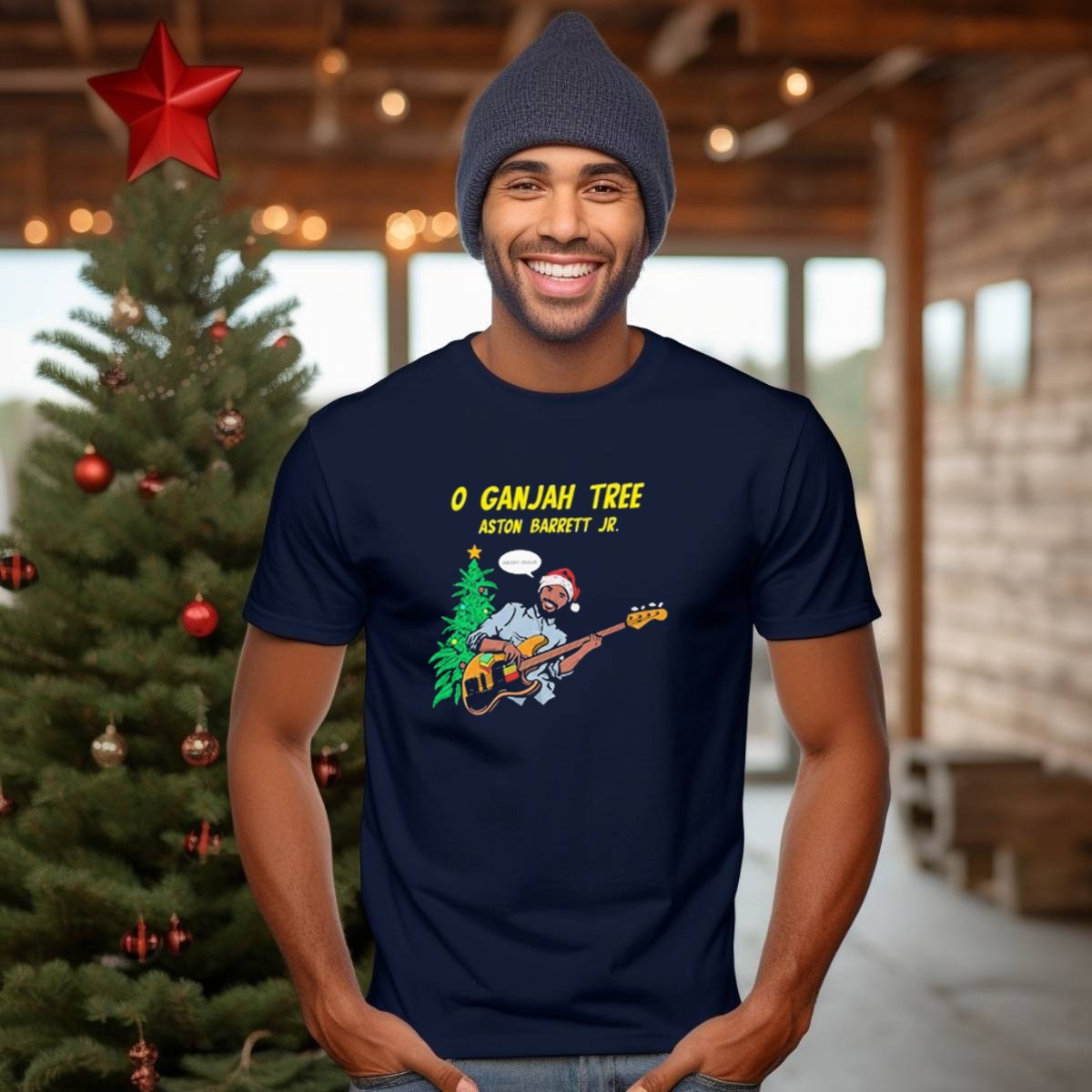 Celebrate the festive season with our O Ganjah Tree Holiday Christmas Aston Barrett Jr Santa Hat Playing Guitar T-Shirt! This unique fan-made design is perfect for music lovers and holiday enthusiasts alike. Ideal for casual wear, themed events, or just spreading holiday cheer, this shirt combines a fun graphic with the comfort of high-quality materials, making it a must-have for any wardrobe. Show off your love for reggae music and the holidays in style!