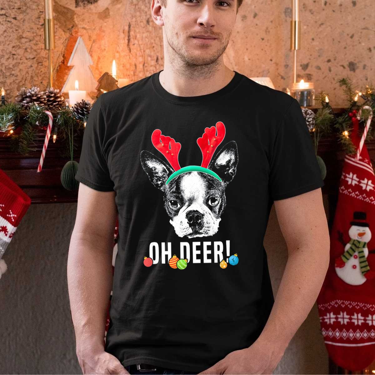 Celebrate the holiday season with our delightful “Oh Deer Boston Terrier” T-shirt, perfect for dog lovers and festive spirits alike! This whimsical design features an adorable Boston Terrier adorned with reindeer antlers and Christmas ornaments, making it an ideal choice for casual wear, themed events, or simply spreading cheer during daily outings. Crafted with comfort in mind, this shirt is not just a statement piece but also a cozy companion for all your festive adventures.