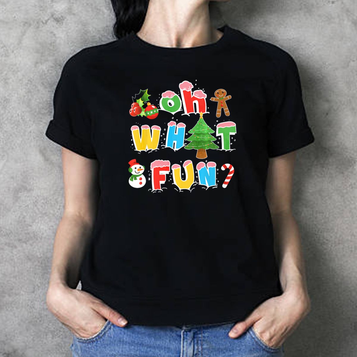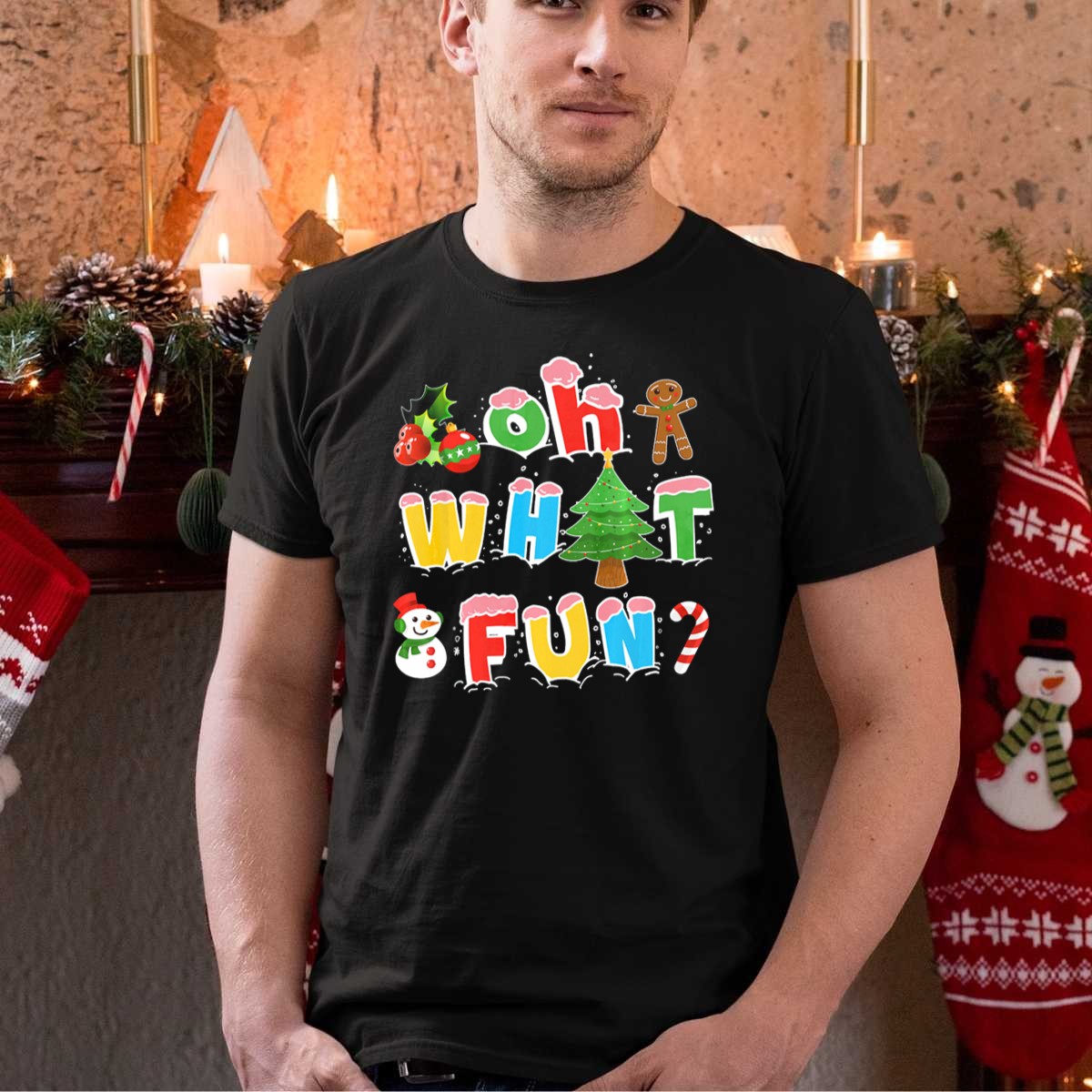 Celebrate the joy of the holiday season with our “Oh What Fun” Christmas Tree Gingerbread Snowman Candy Cane Holiday T-Shirt! Perfect for festive gatherings, family parties, or cozy days at home, this fan-made design showcases your love for all things merry and bright. Crafted for comfort and style, this shirt is a delightful addition to your wardrobe that brings holiday cheer wherever you go.