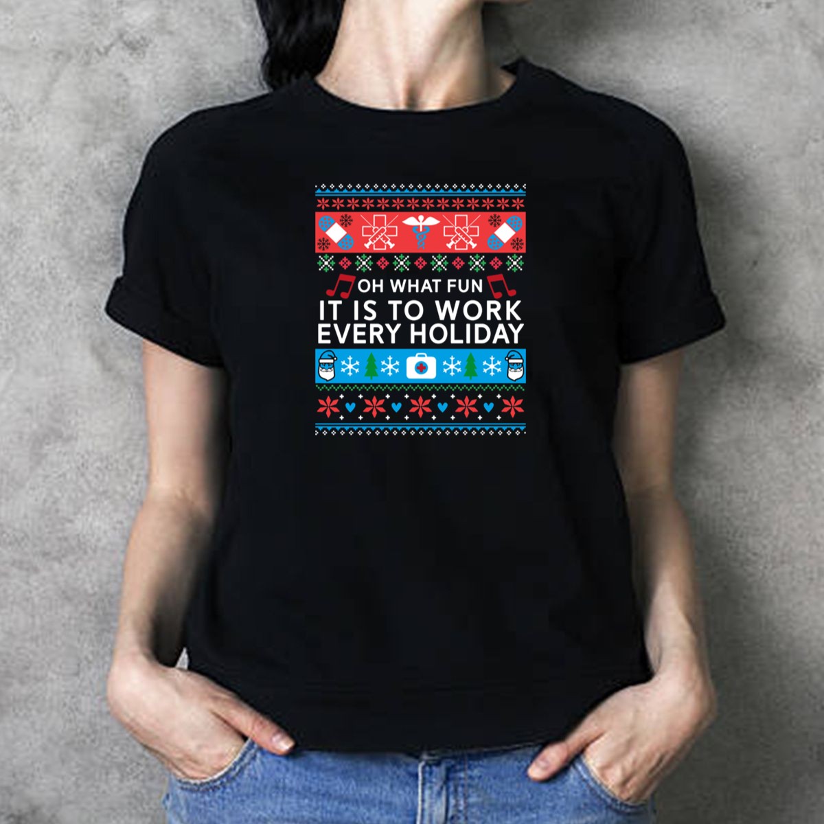 Celebrate the joy and humor of the holiday season with our “Oh What Fun It Is To Work Every Holiday” Funny Nurse Christmas Ugly T-Shirt! Perfect for those dedicated nurses who keep the spirit alive while working through the festive season, this shirt brings a touch of fun to your daily wear. Made for casual outings, themed events, or just lounging at home, this fan-made design is proudly printed in the USA, ensuring you wear your holiday spirit with pride and style.