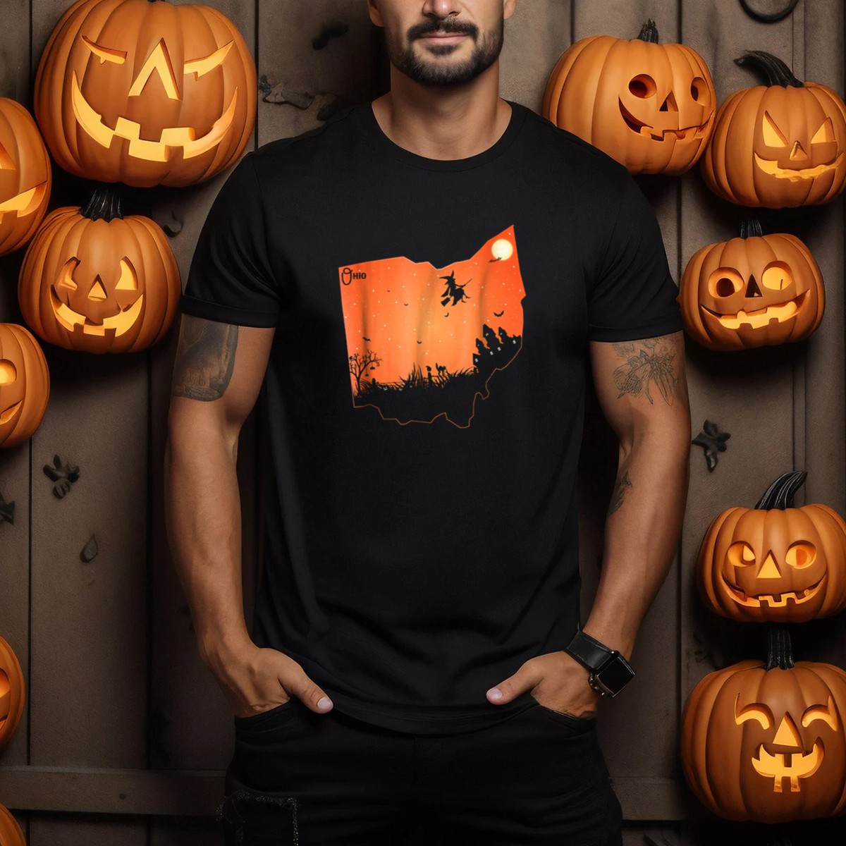 Embrace the spirit of Halloween with our Ohio Halloween Witch Silhouette Full Moon Spooky Night Scene T-Shirt! Perfect for those who love to celebrate the eerie charm of the season, this shirt features a unique fan-made design that captures the essence of a spooky night under a full moon. Ideal for casual wear, themed events, or just adding a touch of Halloween flair to your daily wardrobe, this shirt is a must-have for any Halloween enthusiast.