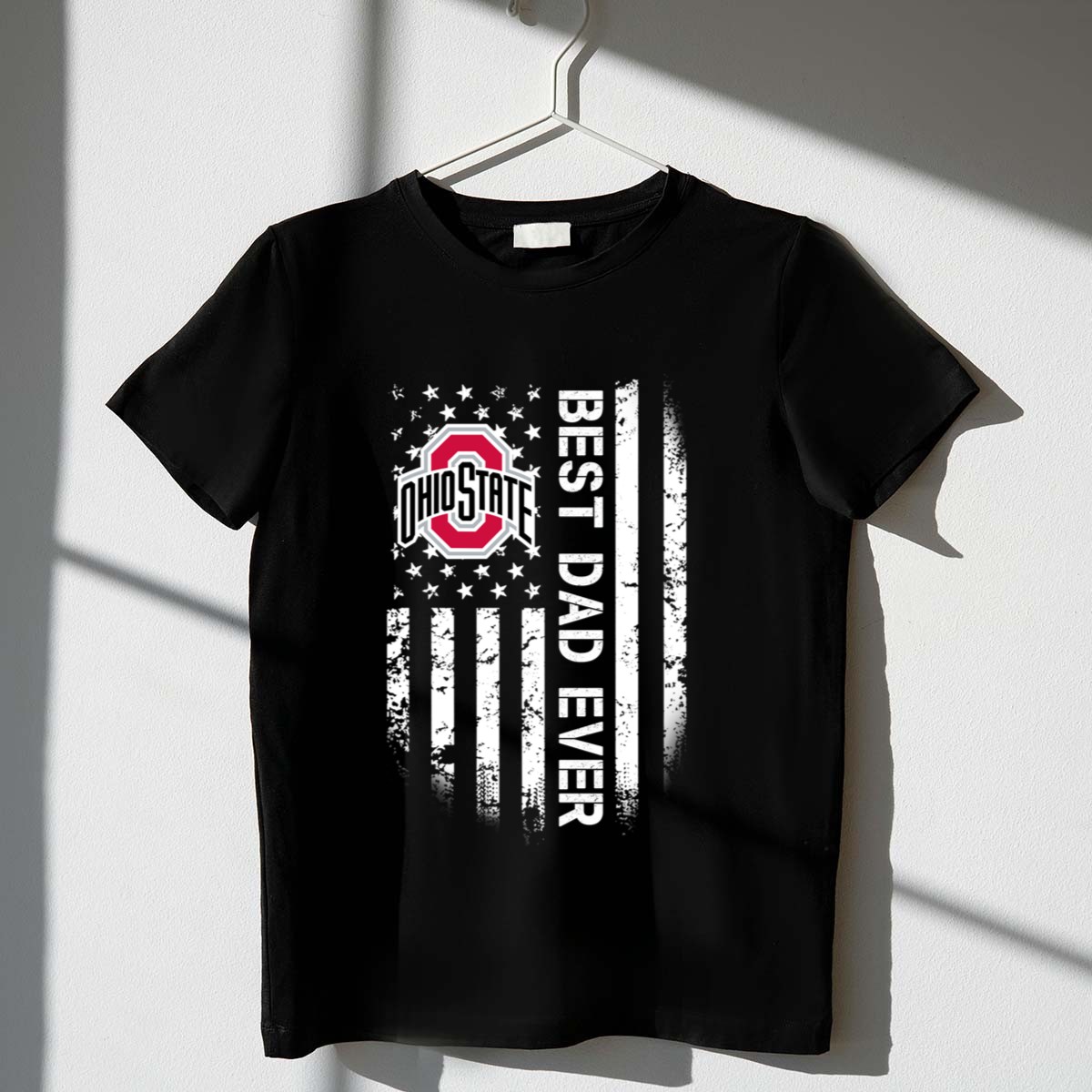 Celebrate the ultimate dad and show off your Ohio State pride with our “Best Dad Ever” flag design T-shirt! Perfect for fathers who are fans of the Buckeyes, this shirt is a fantastic choice for casual outings, themed events, or simply lounging at home. Its unique fan-made graphic printed in the USA makes it a standout piece that combines comfort with a touch of sporty flair.