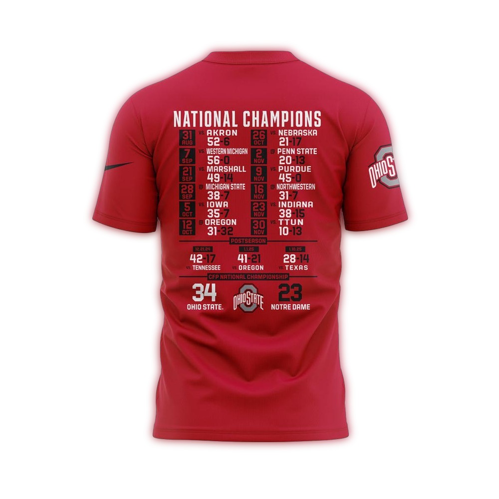 Celebrate the Ohio State Buckeyes’ triumph in the 2024 College Football Playoff National Championship with this all-over printed T-shirt! Perfect for die-hard fans and casual wearers alike, this unique shirt is ideal for game days, tailgating, or simply showcasing your Buckeye pride in style. Its eye-catching design makes it a standout piece for anyone looking to express their team spirit.