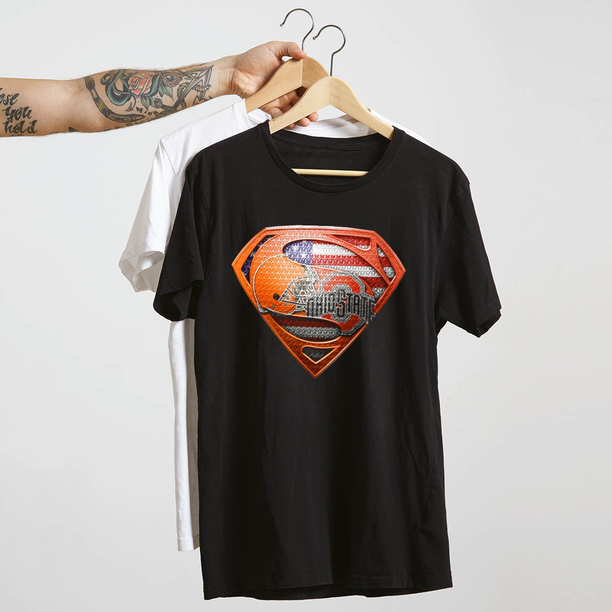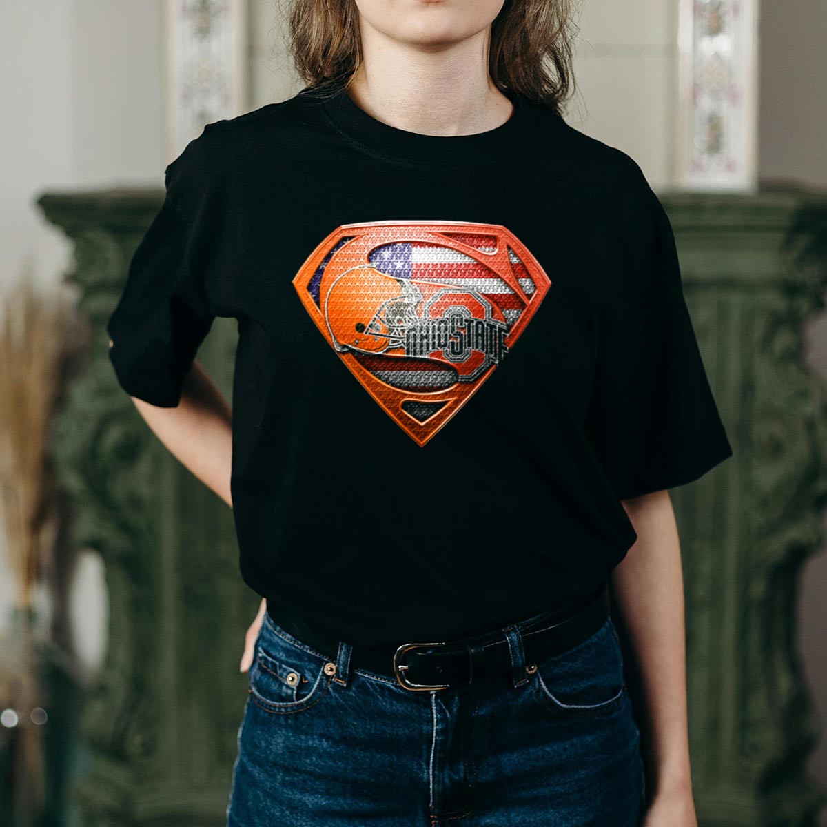 Show your pride for the Ohio State Buckeyes with this eye-catching American Flag Superman Logo T-Shirt! Perfect for fans of all ages, this shirt is ideal for casual outings, game days, or themed events where you want to stand out. Crafted from soft, breathable fabric, it combines comfort with a bold design that captures the spirit of Ohio State, making it a must-have addition to any fan’s wardrobe.