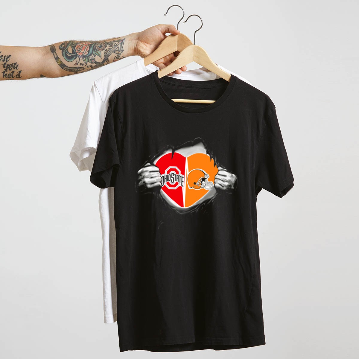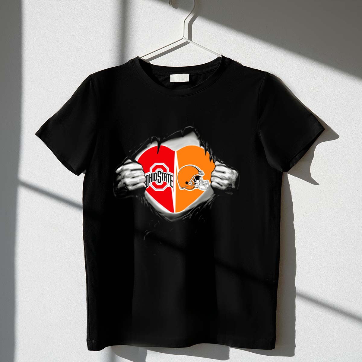 Show your love for Ohio sports with our Ohio State Buckeyes and Cleveland Browns Heart T-Shirt! This fan-made design is perfect for die-hard fans and casual wearers alike, making it an ideal choice for game days, themed events, or simply lounging around. Printed in the USA, this shirt combines comfort and style, allowing you to proudly display your team spirit wherever you go.