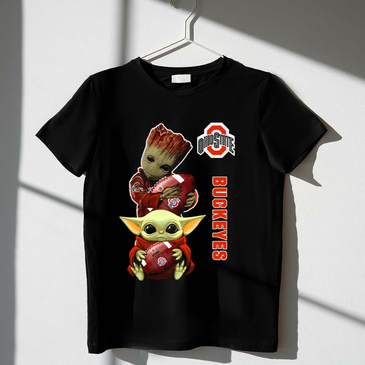 Show your love for the Ohio State Buckeyes in a fun and unique way with our Baby Groot and Baby Yoda Football T-Shirt! Perfect for fans of all ages, this shirt combines the excitement of college football with beloved pop culture icons. Whether you’re heading to a game, hosting a themed event, or simply enjoying a casual day out, this shirt is sure to turn heads and spark conversations. Made with comfort and style in mind, it’s a must-have addition to any Buckeyes fan’s wardrobe.