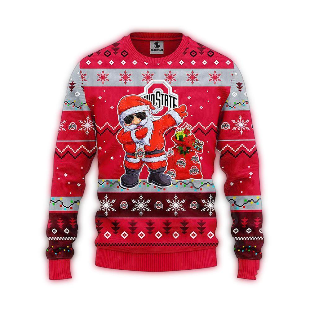 Get ready to jingle all the way with our Ohio State Buckeyes Dabbing Christmas Santa Snowman Ugly Sweater! Perfect for Buckeyes fans and holiday cheer enthusiasts alike, this festive piece is your go-to for holiday parties, cozy family gatherings, or simply making a statement while you enjoy a hot cocoa at home. With its playful design, this sweater brings a unique twist to traditional holiday attire, ensuring you’ll be the life of the celebration!